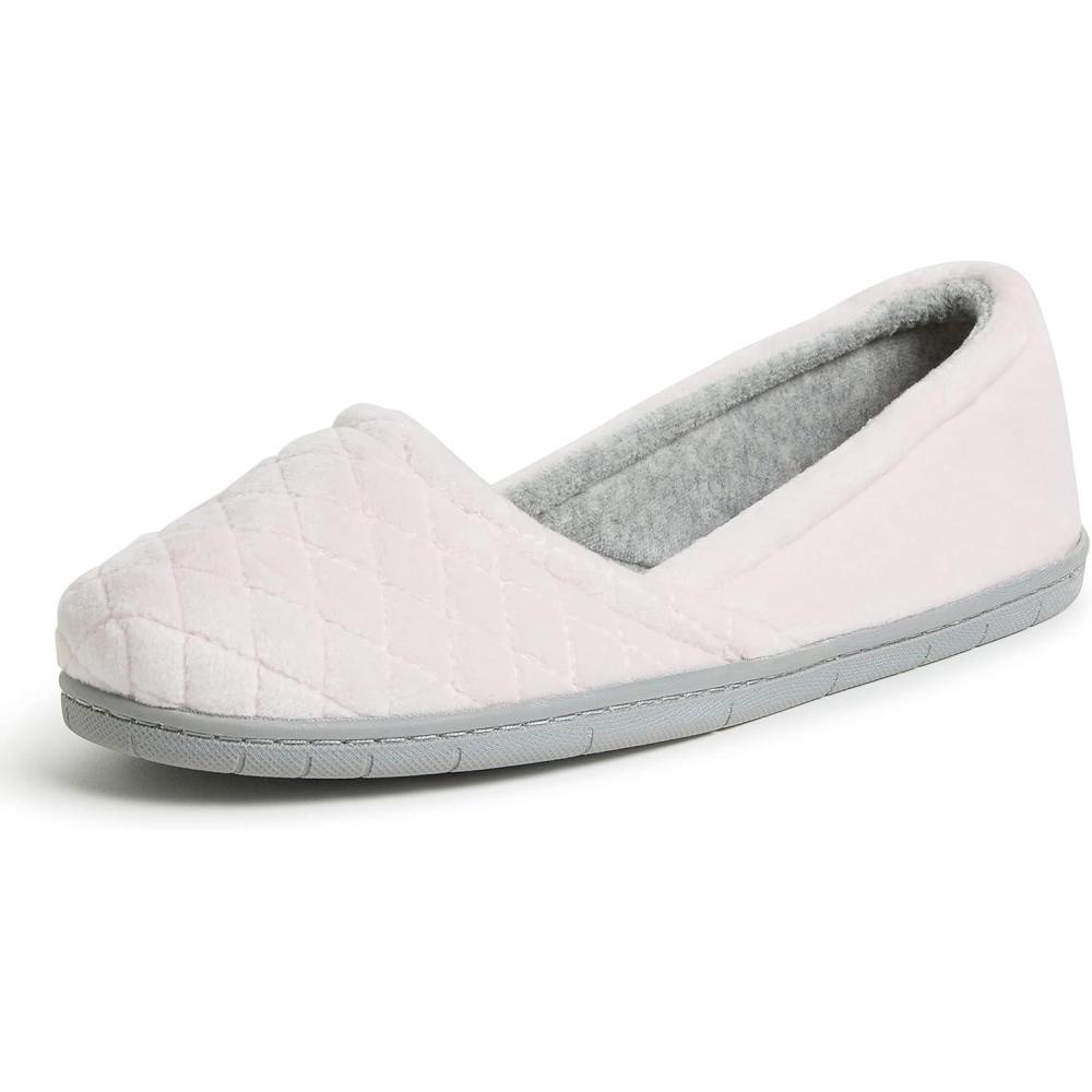 Dearfoams Women’s Katie Velour Secure-fit Closed Back Memory Foam Comfort Slip on Loafer with Rubber Sole Slipper(Fresh Pink)