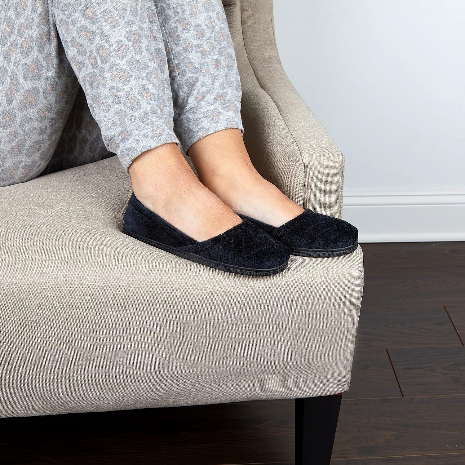 Start your morning off right by sliding into a pair of Dearfoams. With a rubber sole, our velour slippers can be worn indoors while getting ready for the day or outside if you need to grab the mail or walk the dog. A closed back creates a secure feel around the foot, while a quilted design adds an elegant touch. Plus, Dearfoams velour slippers are designed with a multi-density cushioned insole with memory foam for instant comfort. Cleaning them is easy — simply machine wash in cold water and lay flat to dry.