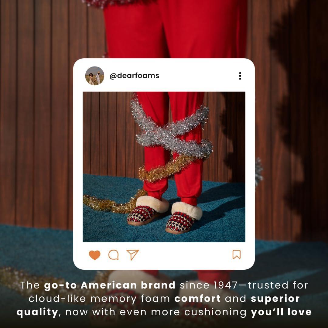 imageDearfoams Womens Memory Foam Cozy Soft House Slippers Gifts for Women Hannah Knit Clog House ShoesBlack Fairisle