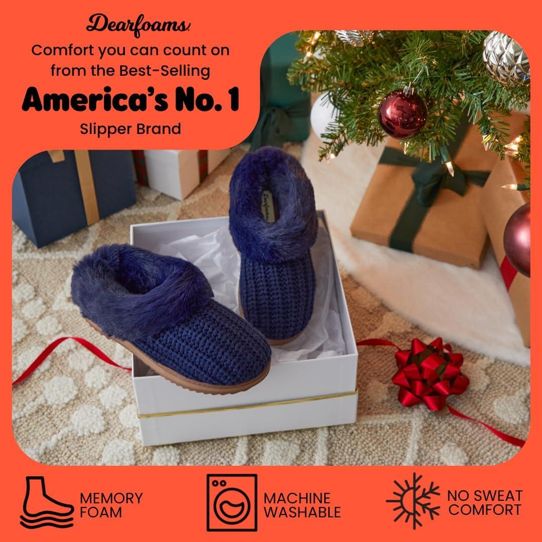 Get your hands on our exclusive Dearfoams Women’s Memory Foam Cozy Soft House Slippers Gifts for Women Hannah Knit Clog House Shoes(Peacoat Solid) collection, now at a discounted price.