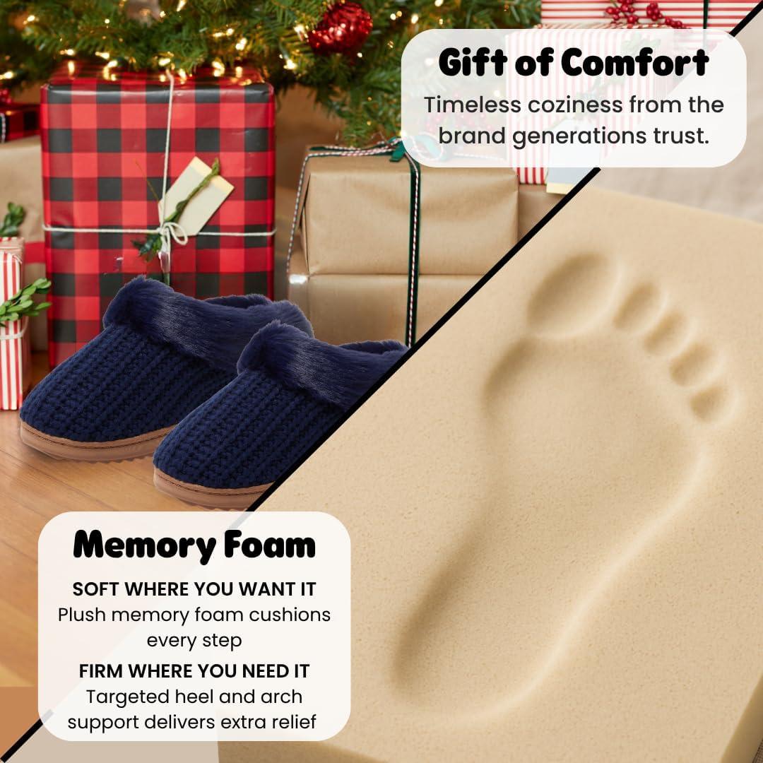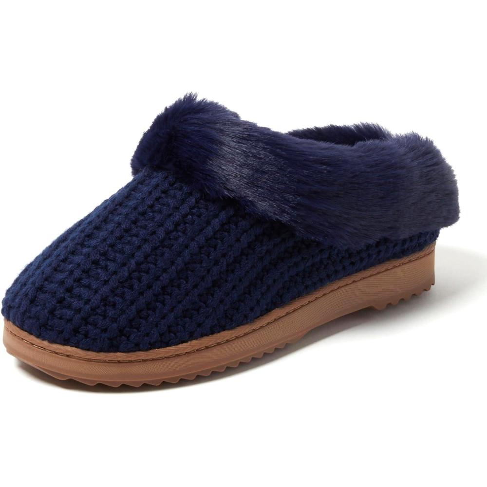 Dearfoams Women’s Memory Foam Cozy Soft House Slippers Gifts for Women Hannah Knit Clog House Shoes(Peacoat Solid)
