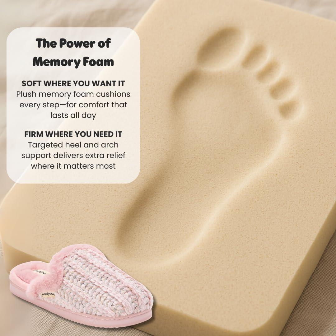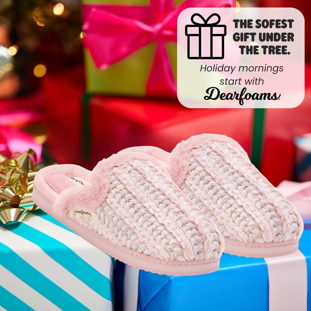 Dearfoams Women’s Memory Foam House Shoes Gifts for Her Paris Scuff Slipper(Pale Mauve)