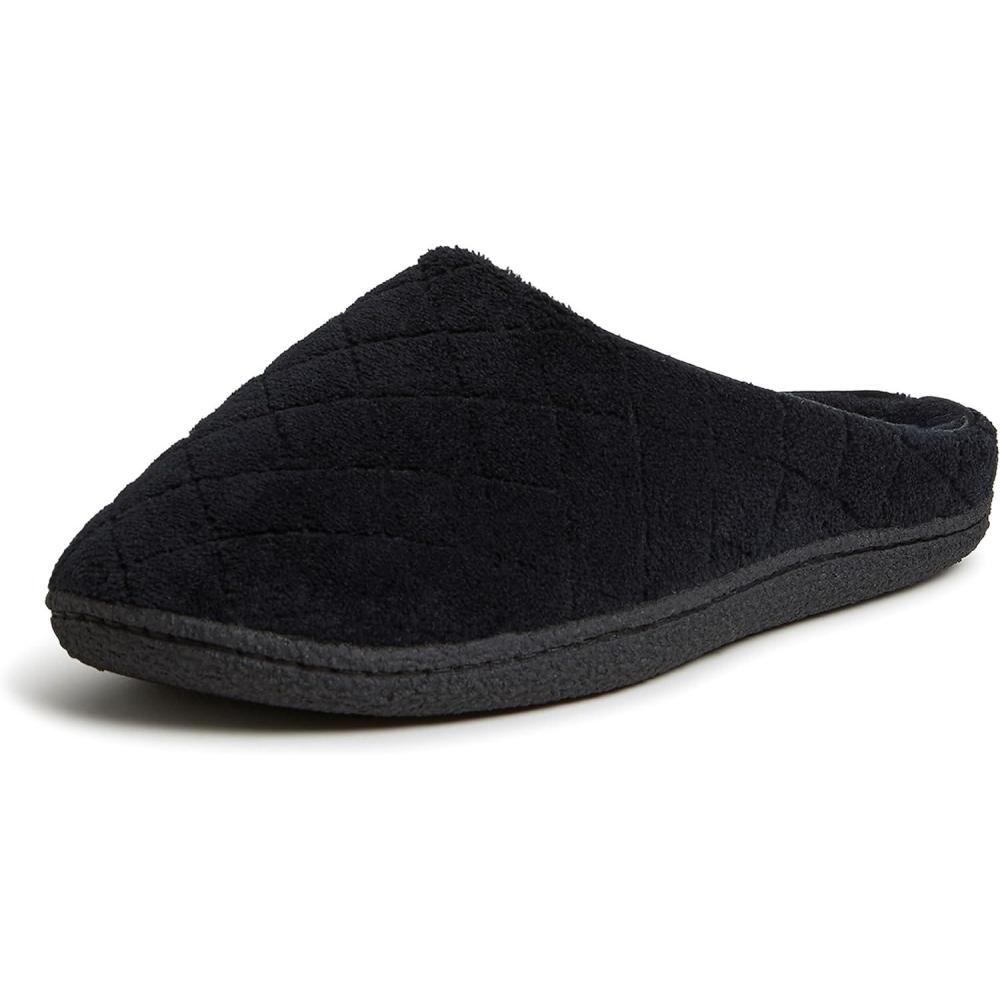 Slide into your new favorite slippers with Dearfoams Women’s Leslie Quilted Terry Microfiber Terry Clog Slippers. Whether picking up the paper on chilly morning, non-stop movement around the house, or simply lounging around relaxing, these clog slippers are perfect for when you are looking for some extra comfort for your well-deserving feet. Each slipper is fitted with multi-density cushioned insole with gel-infused memory foam. They have a cute and cozy microfiber terry upper with contrast piping detail and the molded TPR indoor/outdoor outsole gives added durability and support, no matter where your day leads. Cleaning your Dearfoams slippers is simple– for best results, machine wash in cold water on the gentle cycle and lay flat to dry. Easy care for long lasting freshness! Available in blue multi, fresh pink, iceberg, medium gray, neutral combo, and peacoat, these Dearfoams ladies’ slippers features inclusive sizing from 5-12. Small fits 5-6, Medium fits 7-8, Large fits 9-10, and X-Large fits 11-12.