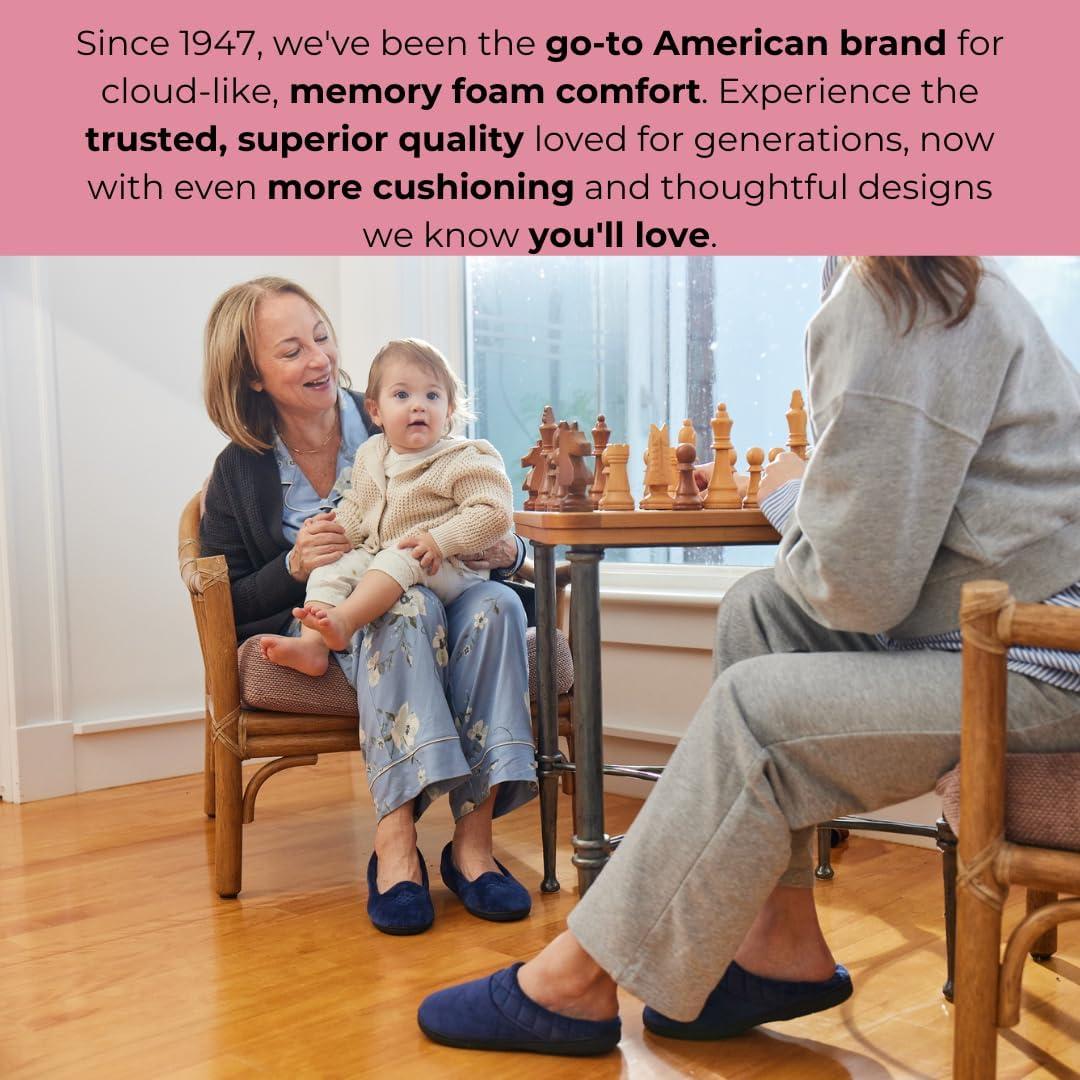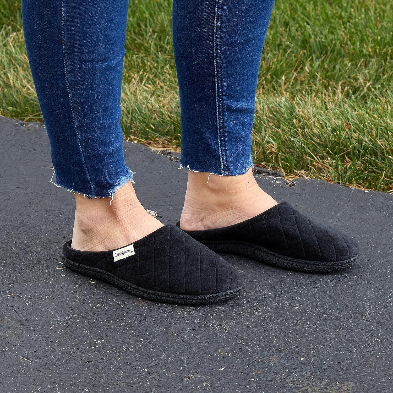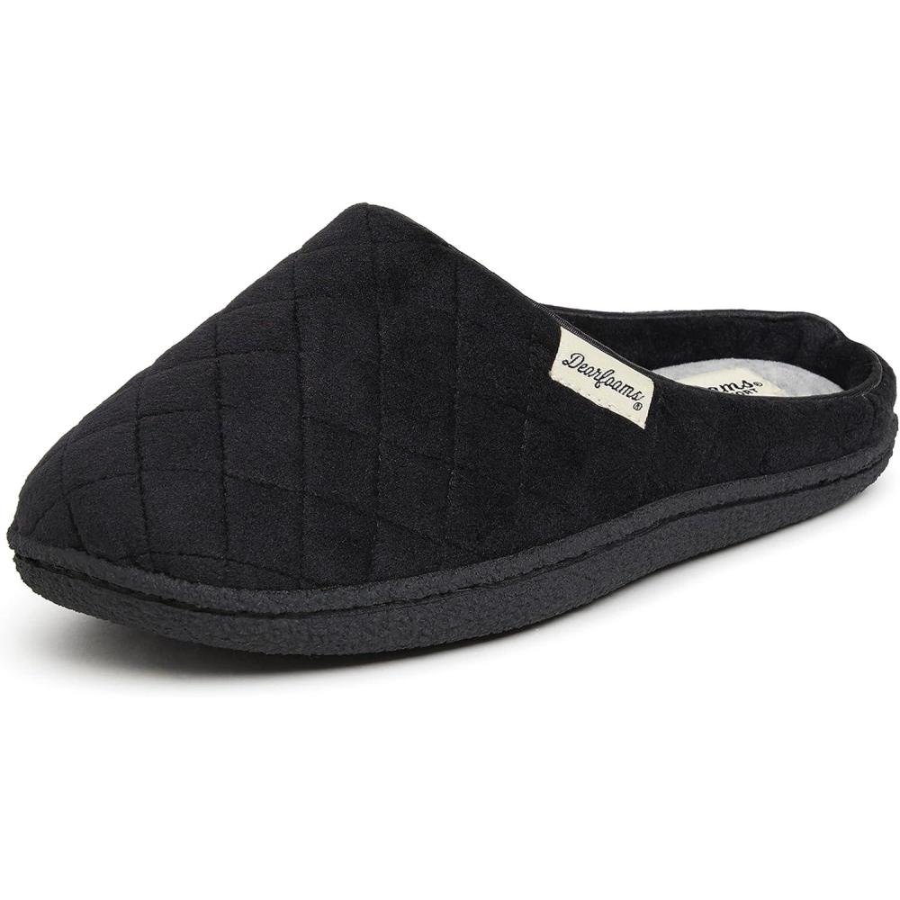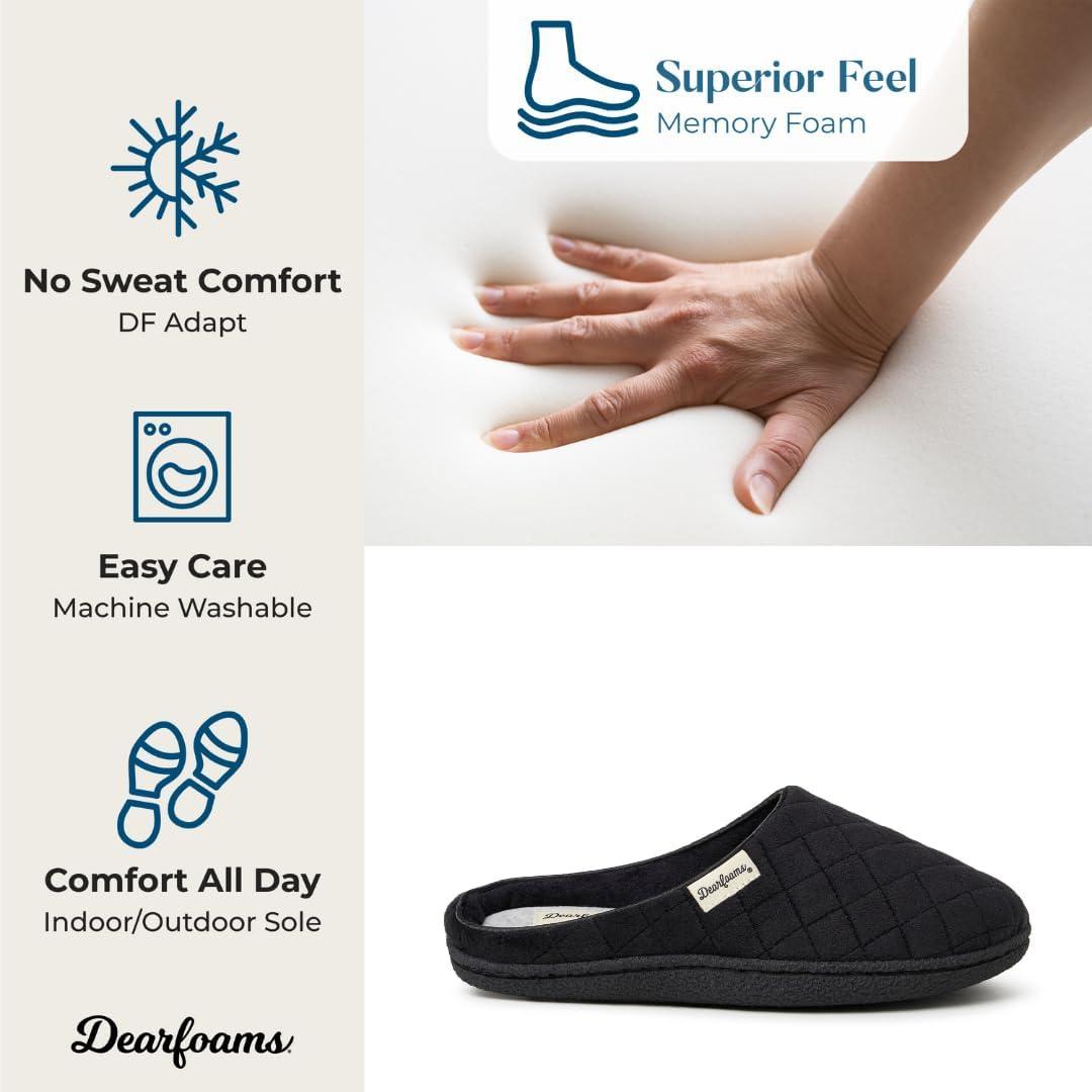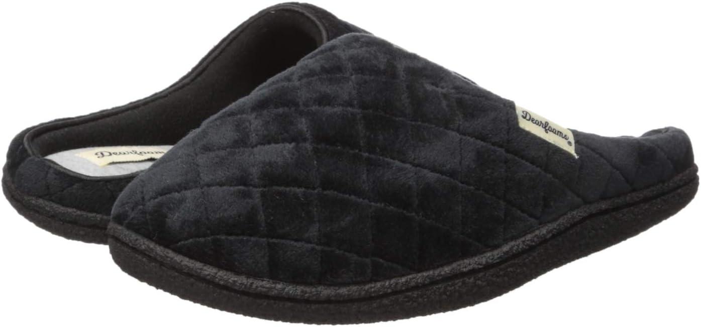 Dearfoams Women’s Memory Foam Indoor House Slippers Leslie Terry Clog House Shoes with Wide Widths(Black Velour)