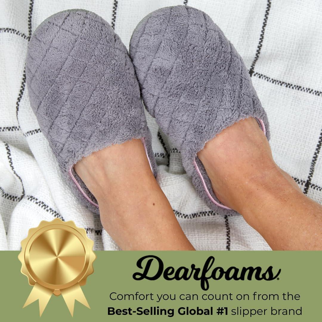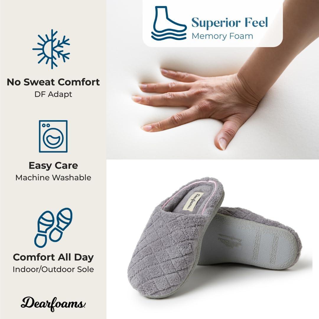 Dearfoams Women’s Memory Foam Indoor House Slippers Leslie Terry Clog House Shoes with Wide Widths(Medium Grey Terry)