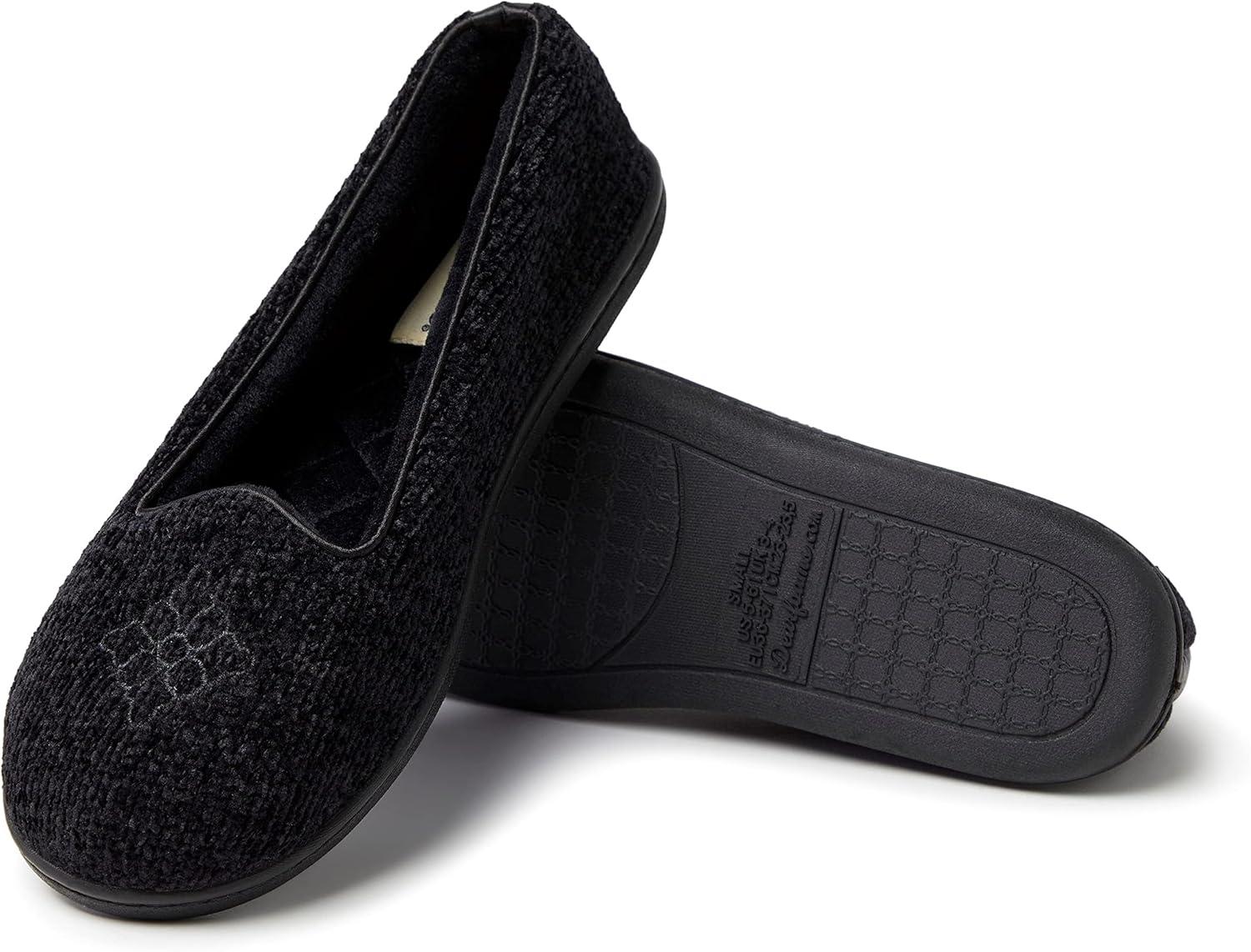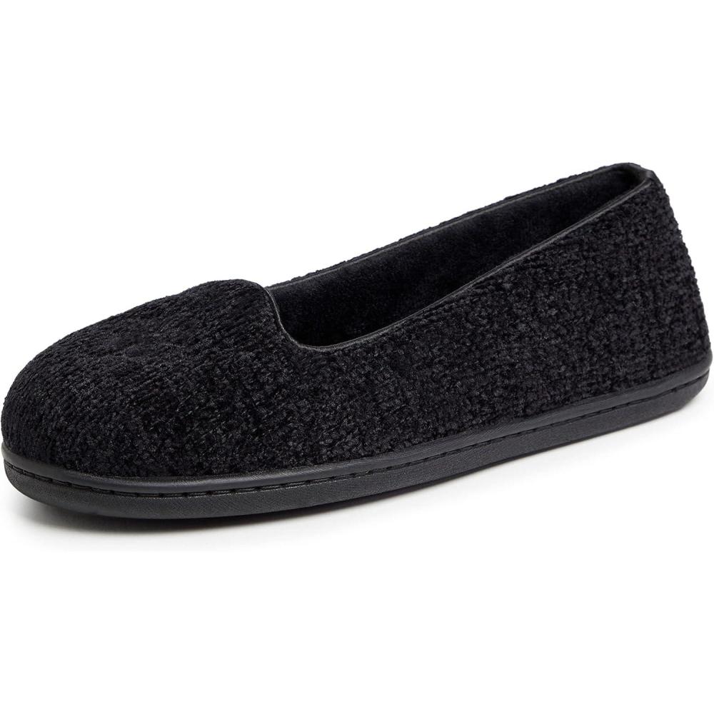 Dearfoams Women’s Rebecca Chenille Closed Back Slipper(Black Chenille)