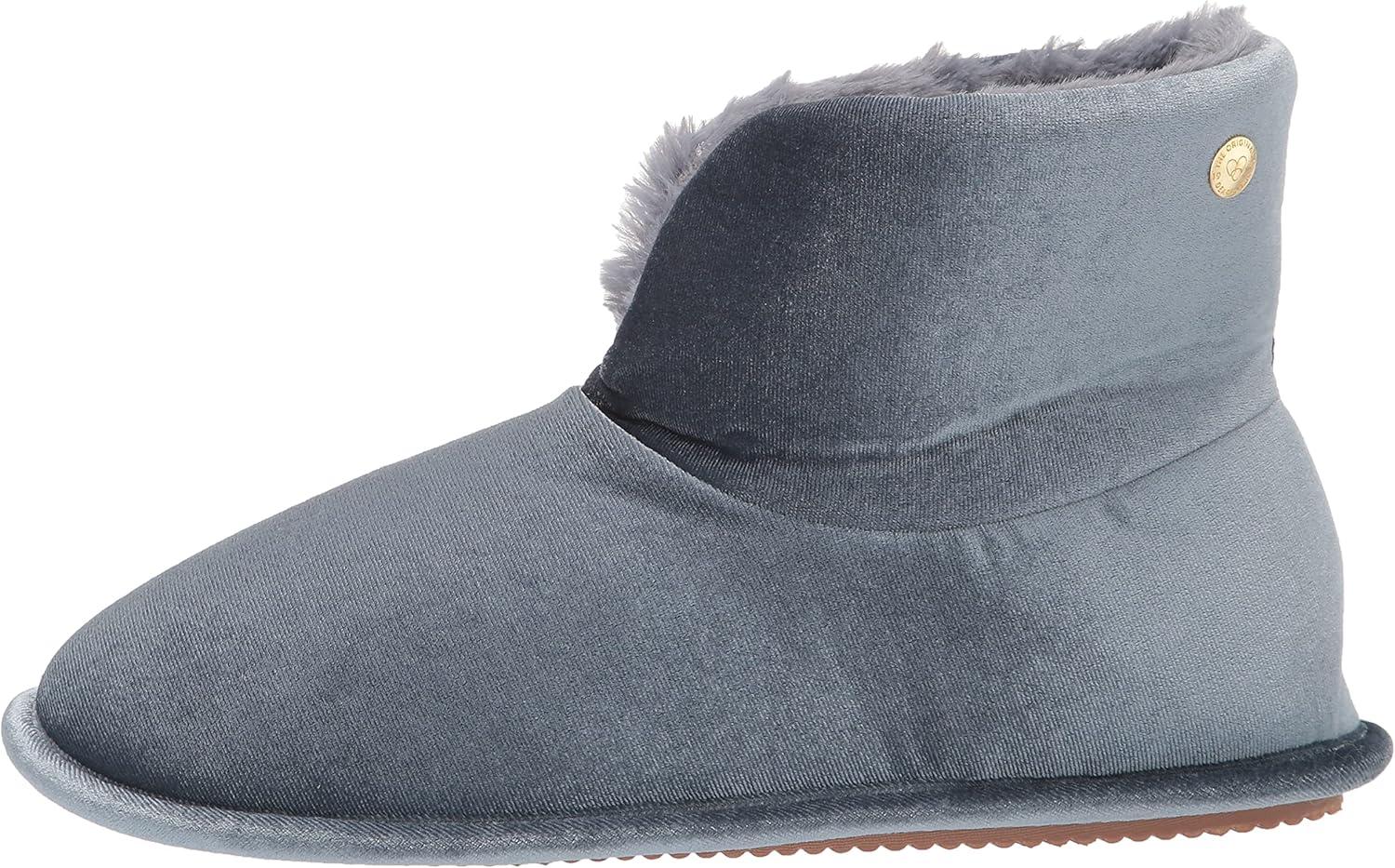 Dearfoams womens Sara Velour BootieSlipper(Shiny Flintstone)