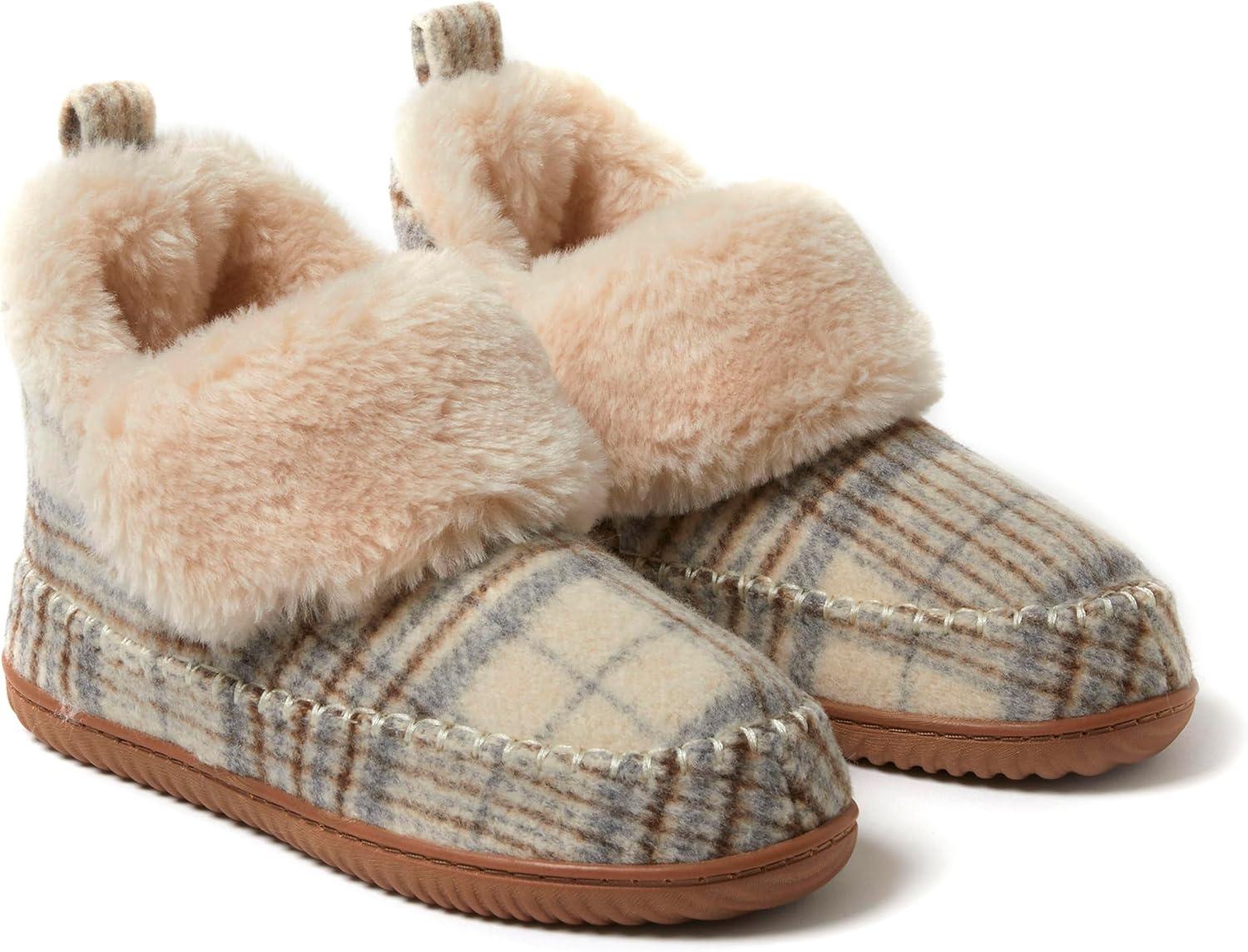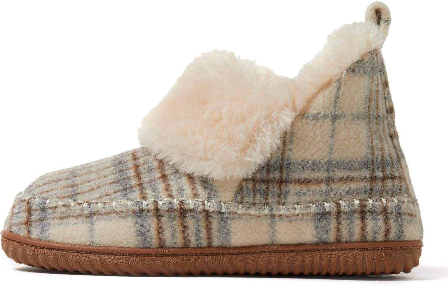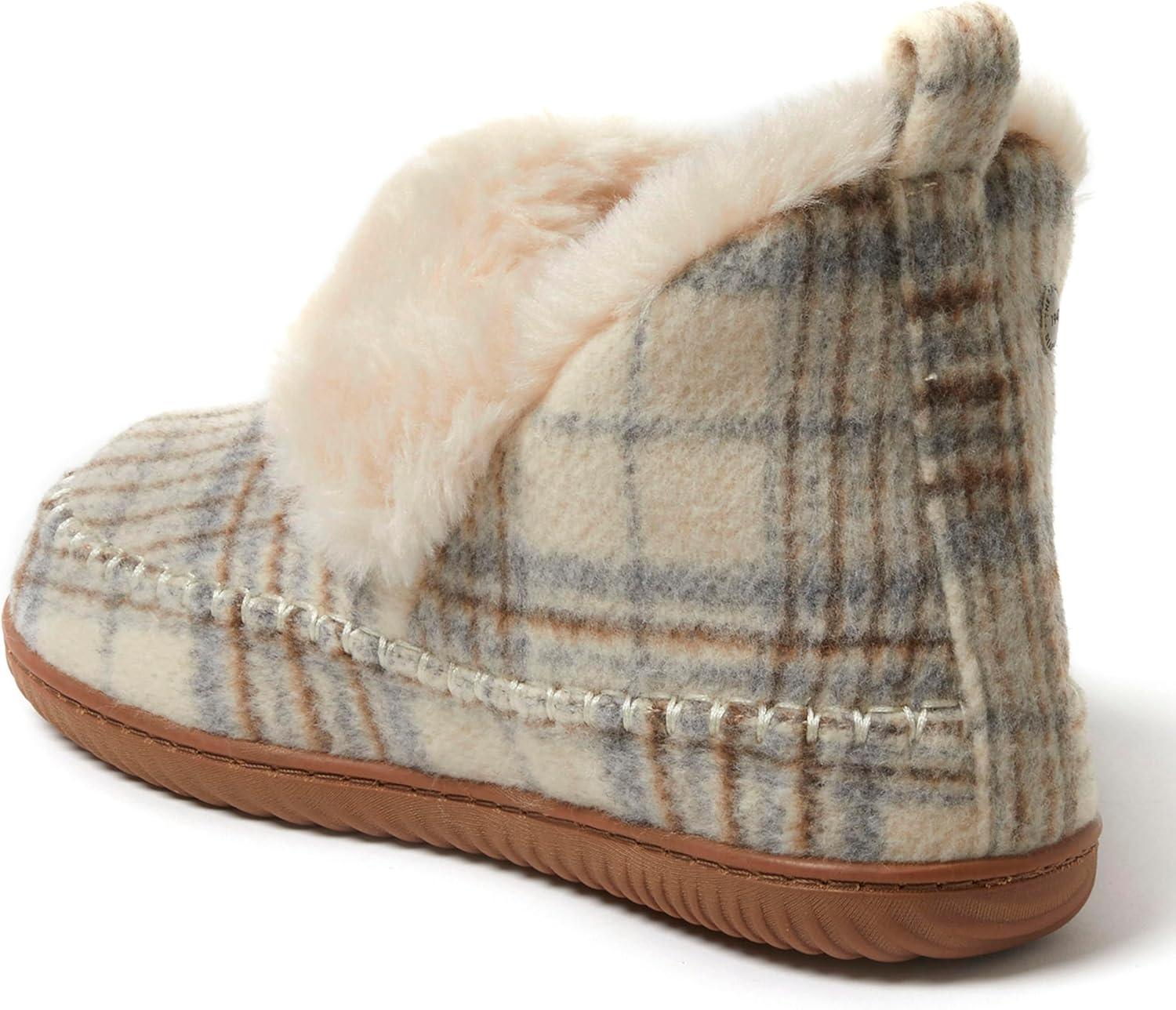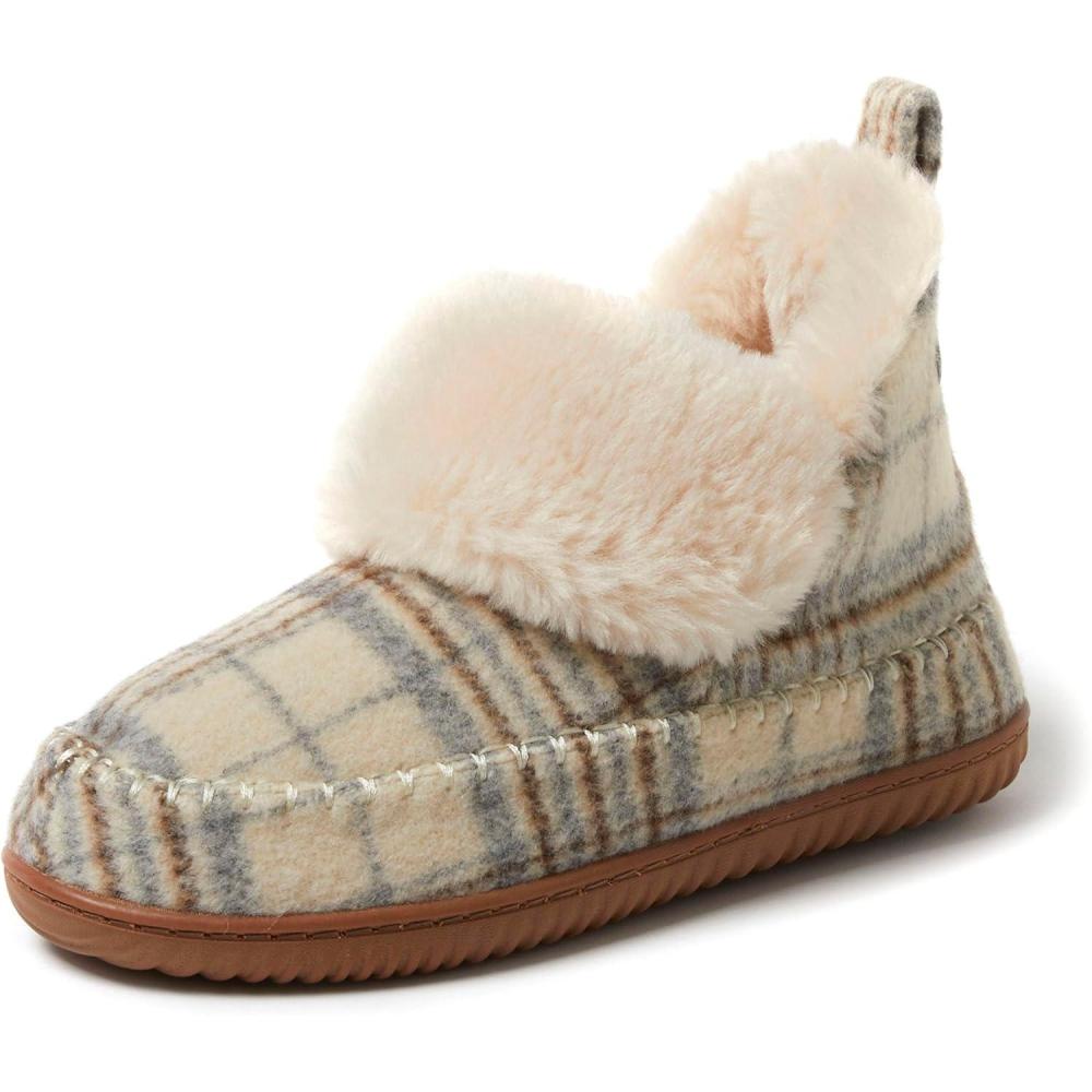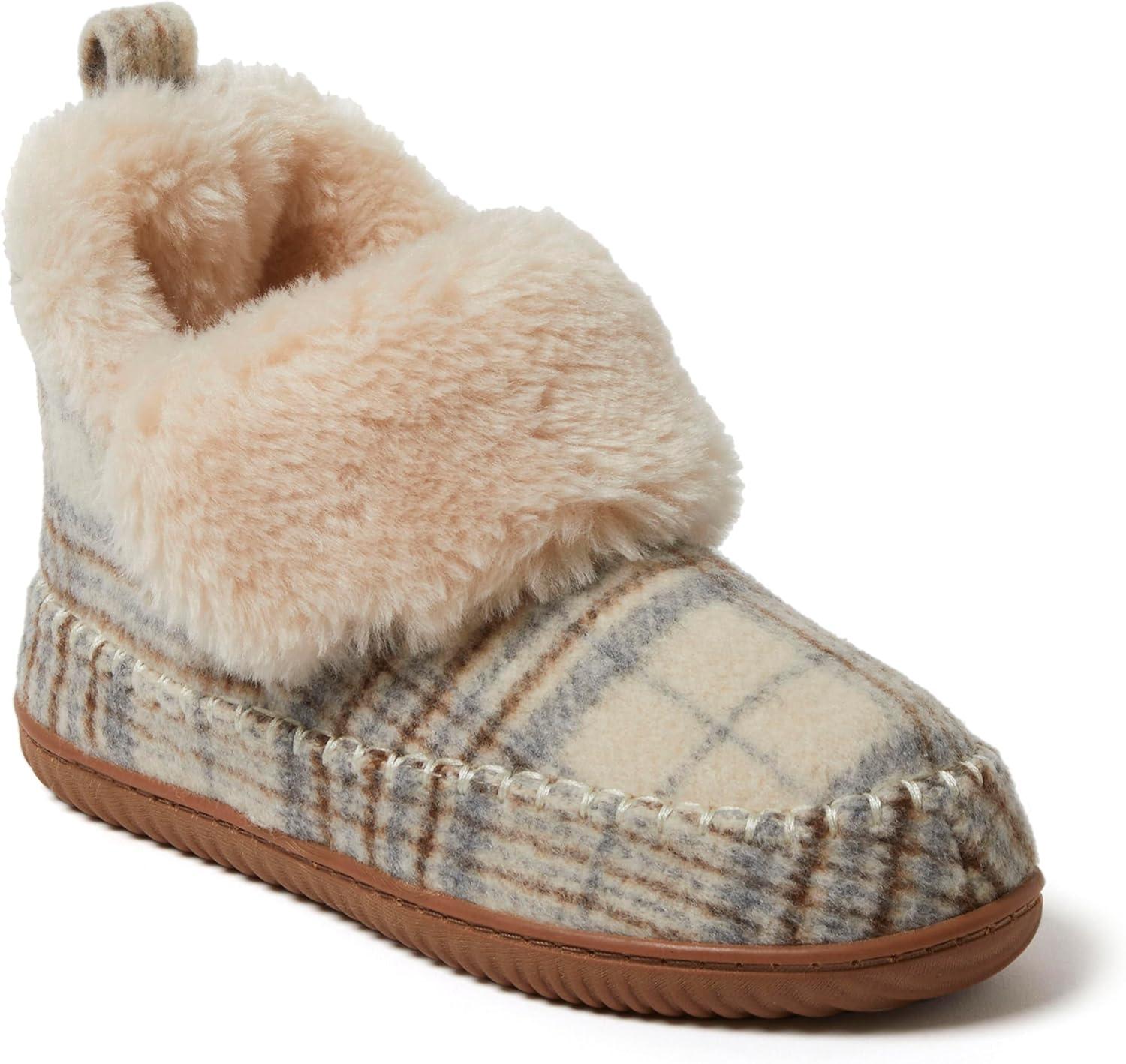 Dearfoams Women’s Slippers Memory Foam Cozy Moritz Bootie – Camping Essentials and Travel Slippers(Grey/Cream)
