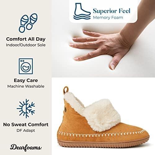 Dearfoams Women’s Slippers Memory Foam Cozy Moritz Bootie – Camping Essentials and Travel Slippers(Potting Soil)
