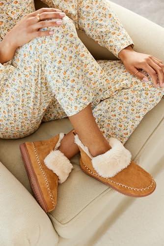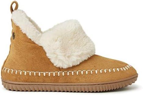 Dearfoams Women’s Slippers Memory Foam Cozy Moritz Bootie – Camping Essentials and Travel Slippers(Whiskey)