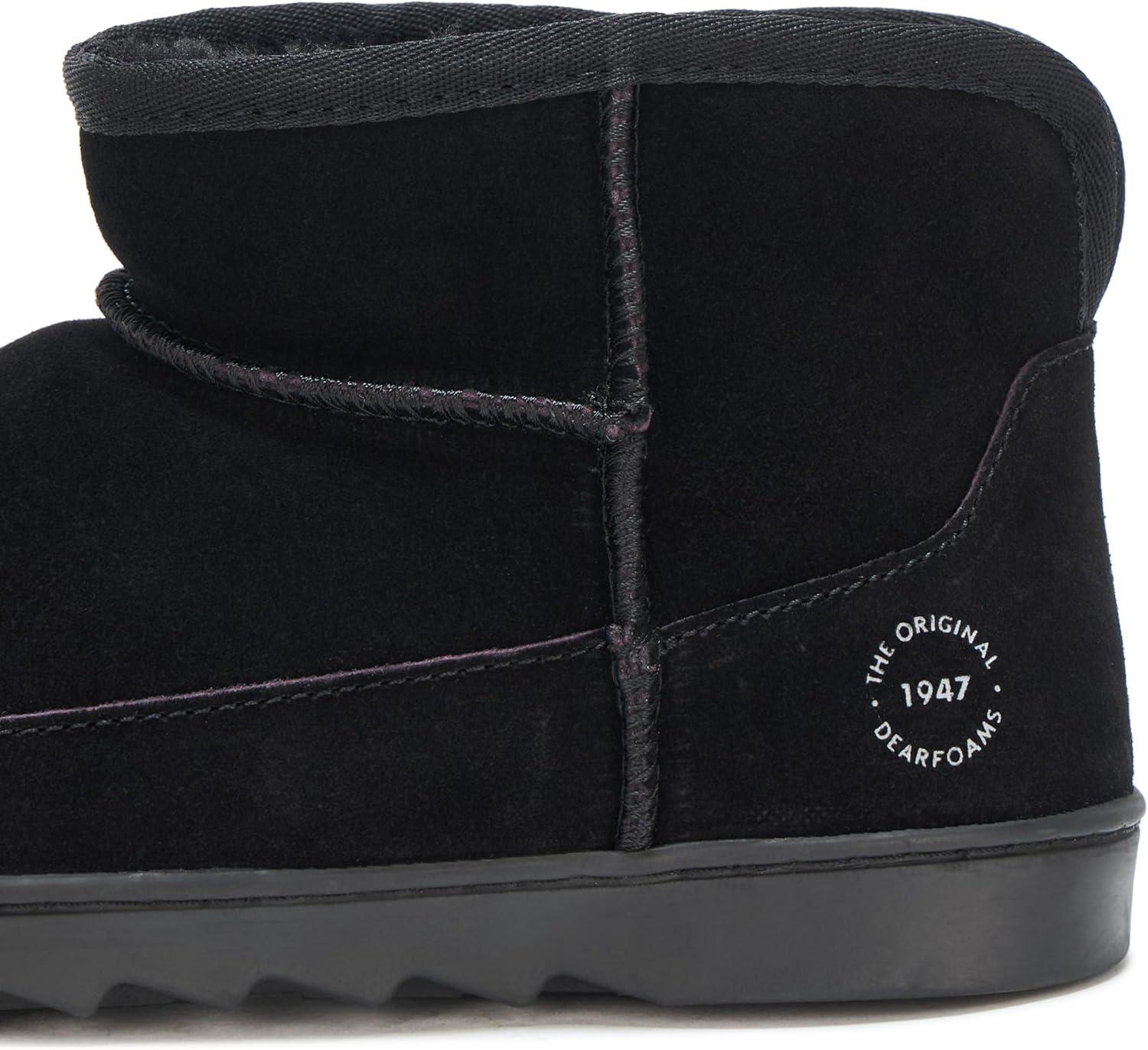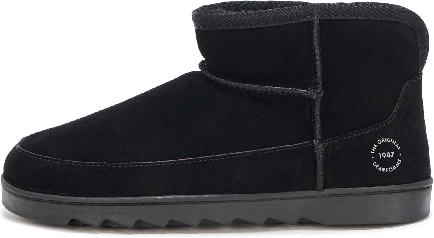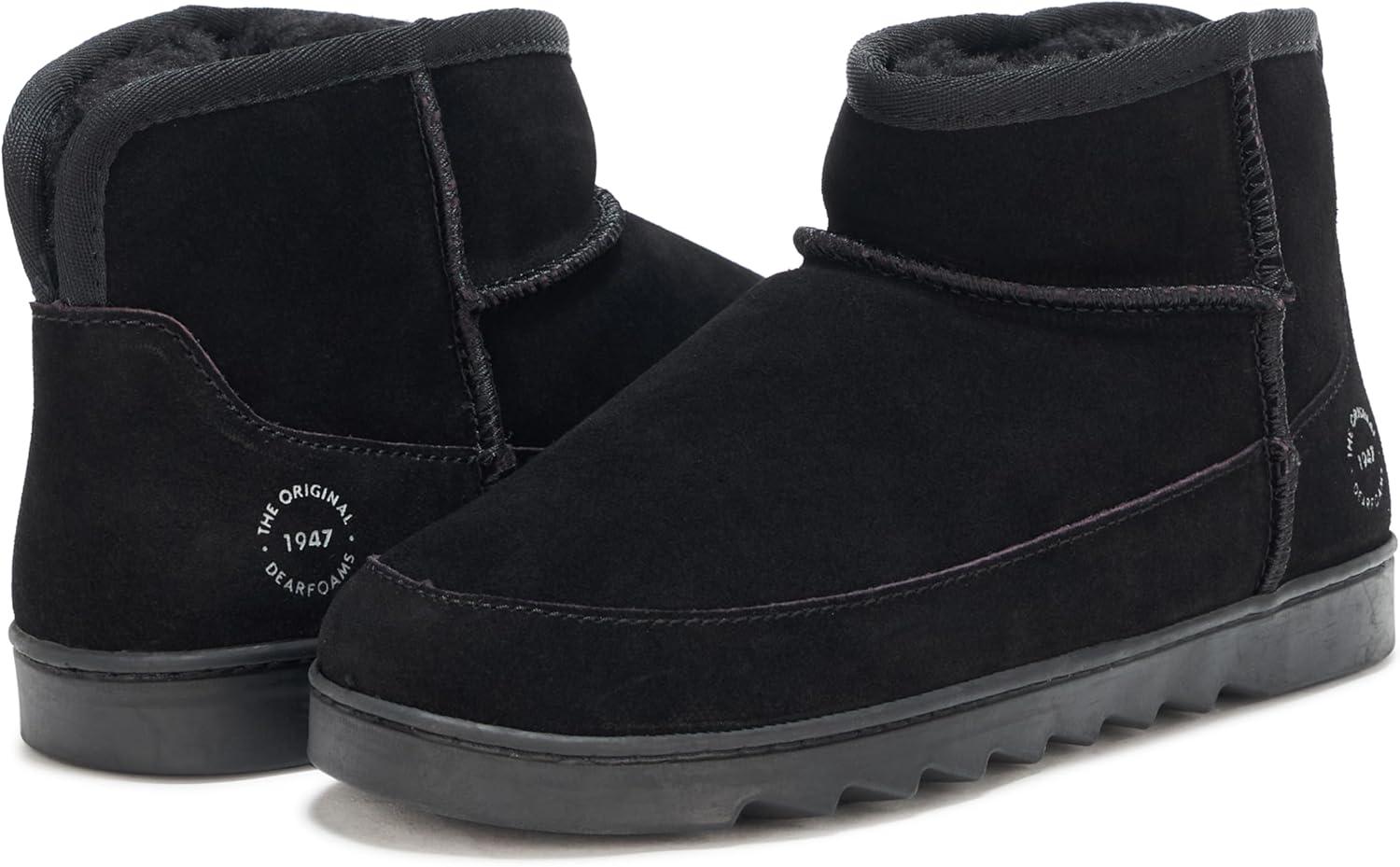 Dearfoams Women’s Suede Indoor Outdoor Memory Foam Mini Ankle Gretchen Boots(Black)
