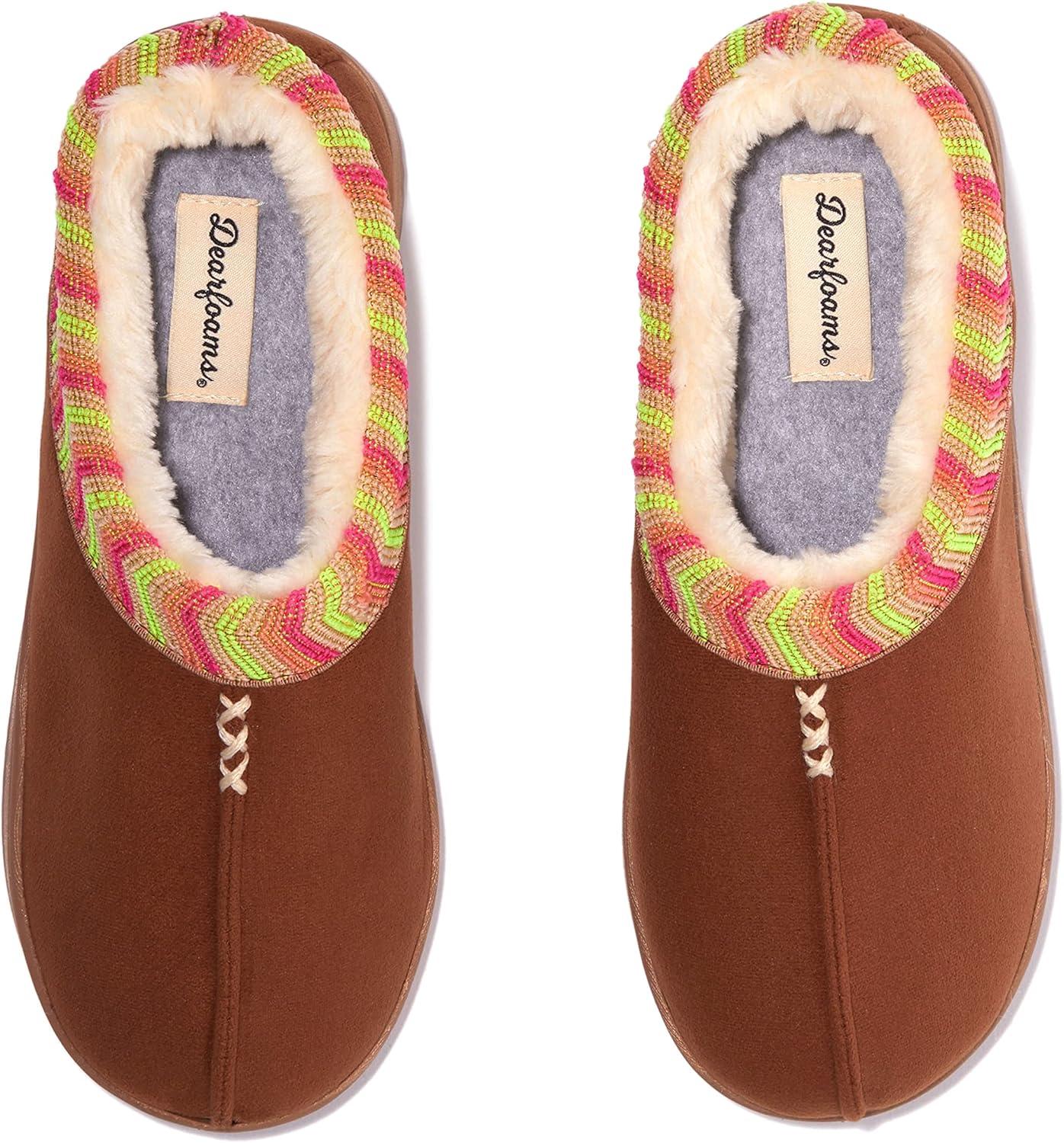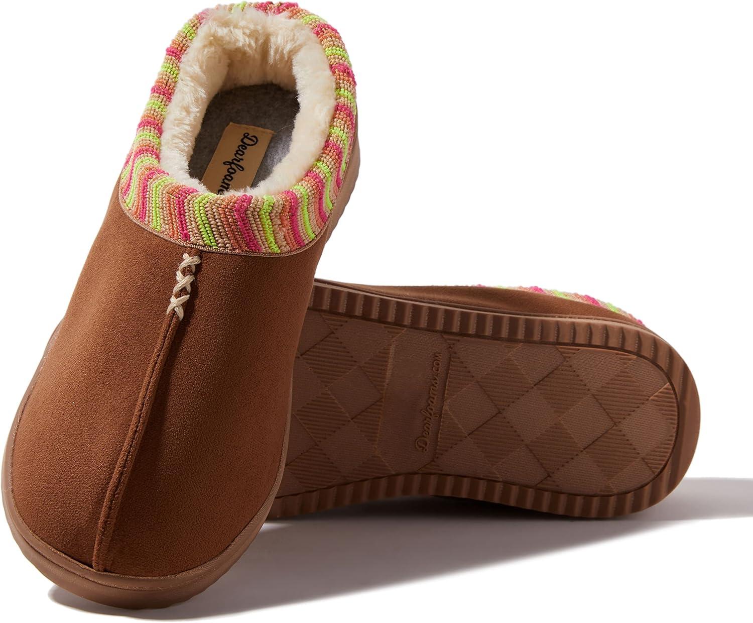 Dearfoams Women’s Wren High Vamp Clog Indoor/Outdoor Memory Foam House Shoe(Chestnut)
