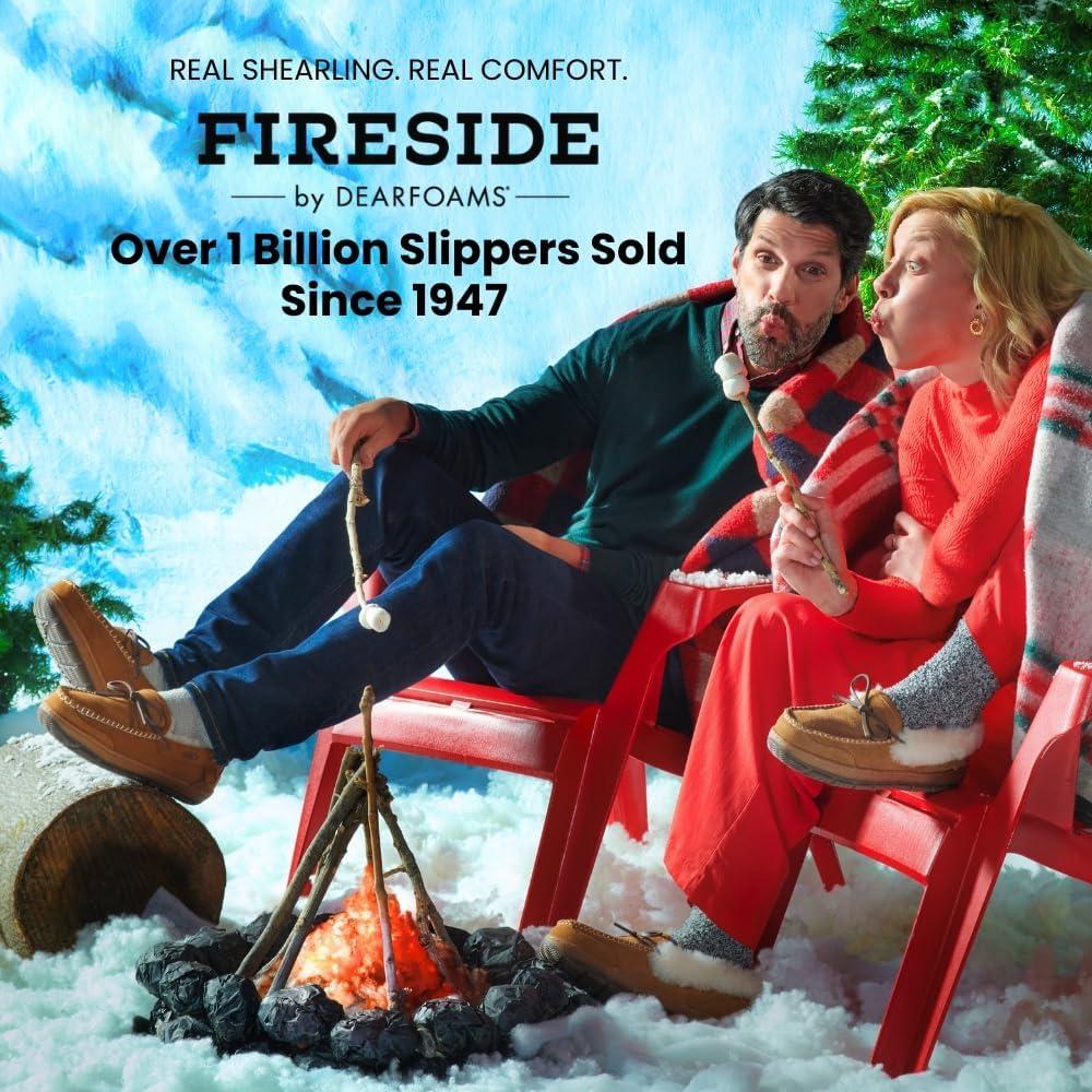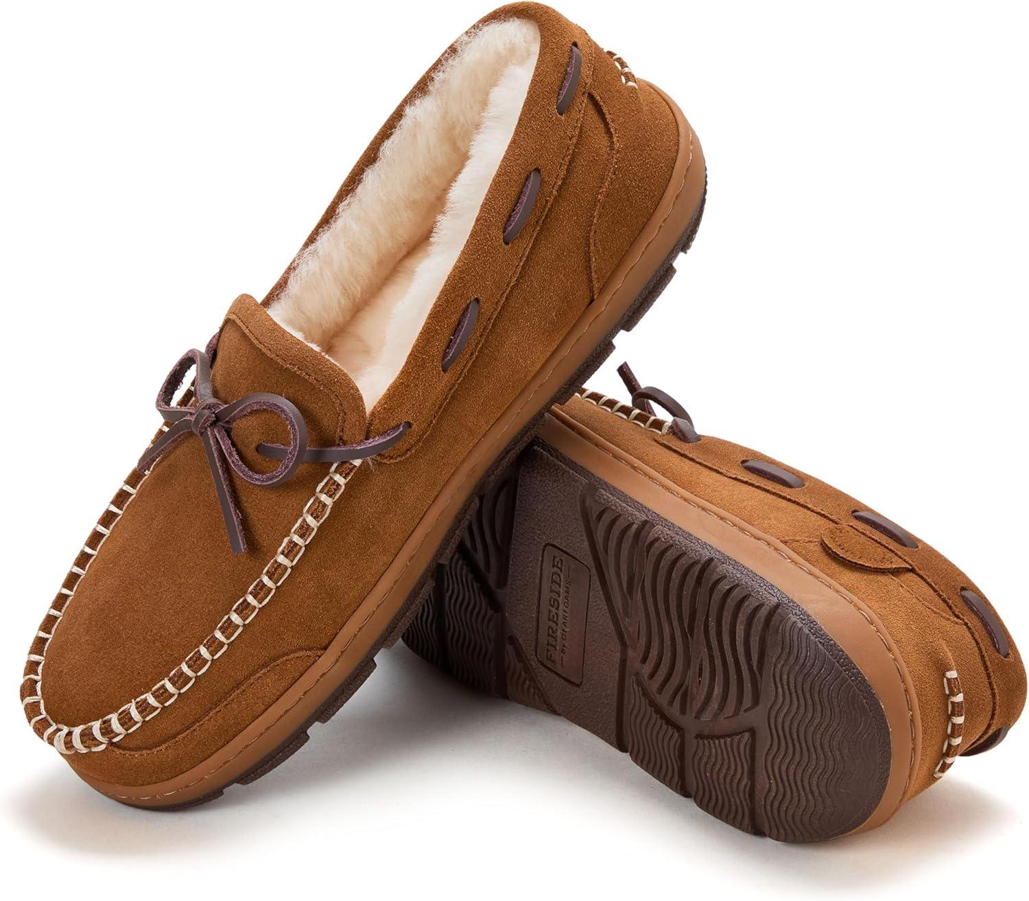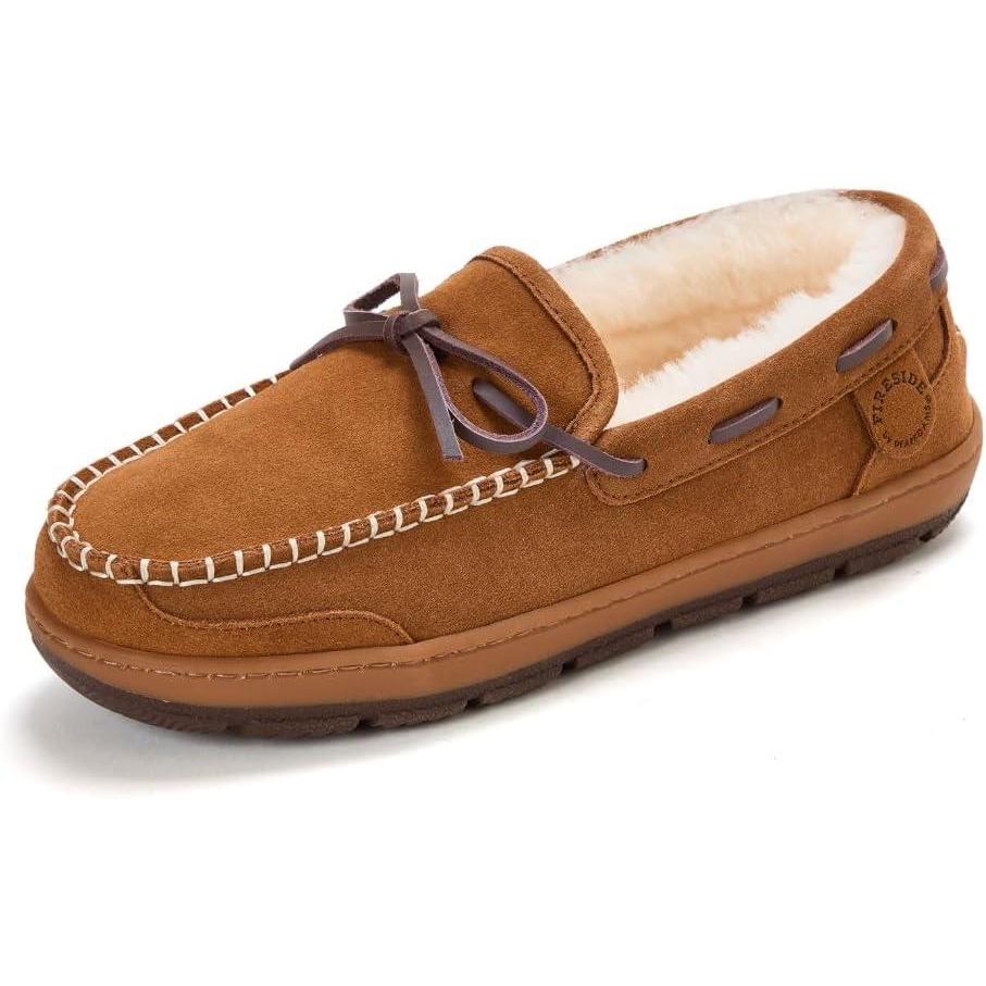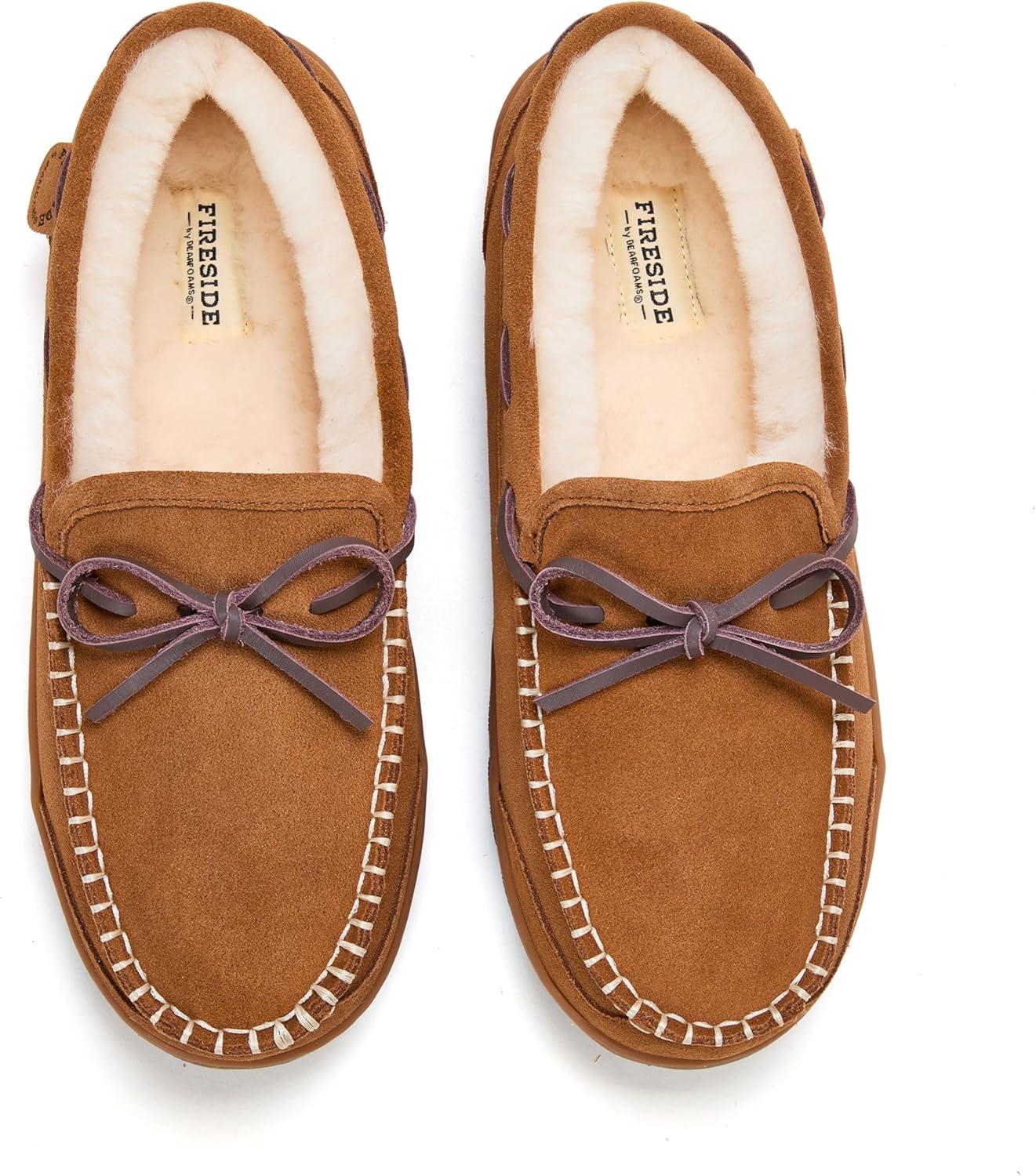 Fireside by Dearfoams mens Forster Genuine Shearling Moc With Stitching(Chestnut)