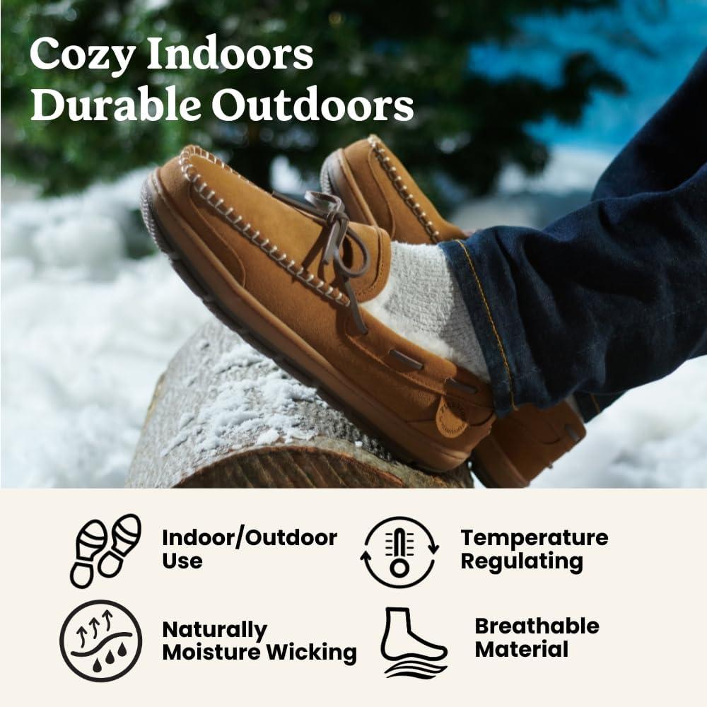 Luxury for everyone. That’s the idea behind the Fireside Collection: a line of slippers at an everyday price on superior quality competitive with other slipper brands. Perfect as a thoughtful gift for your loved ones, Fireside shearling slippers are sure to be their new favorite way to relax! Made with genuine Australian sheepskin lining, these affordable shearling slippers are a must for relaxing in style. But why shearling? Shearling boasts natural temperature-regulating and moisture-wicking properties. They’re a great blend of insulated and breathable, and a few of our styles even feature water-resistant designs to help protect you from the elements. Shearling is also known for its durability; these long-lasting slippers are sure to be favorites for years to come! Temperature-regulating and moisture-wicking slippers are perfect no matter the weather, and these indoor/outdoor slippers are built to handle the busiest of days. Our men’s shearling slippers, women’s shearling slippers, and kids’ shearling slippers are designed with unbeatable quality in mind.