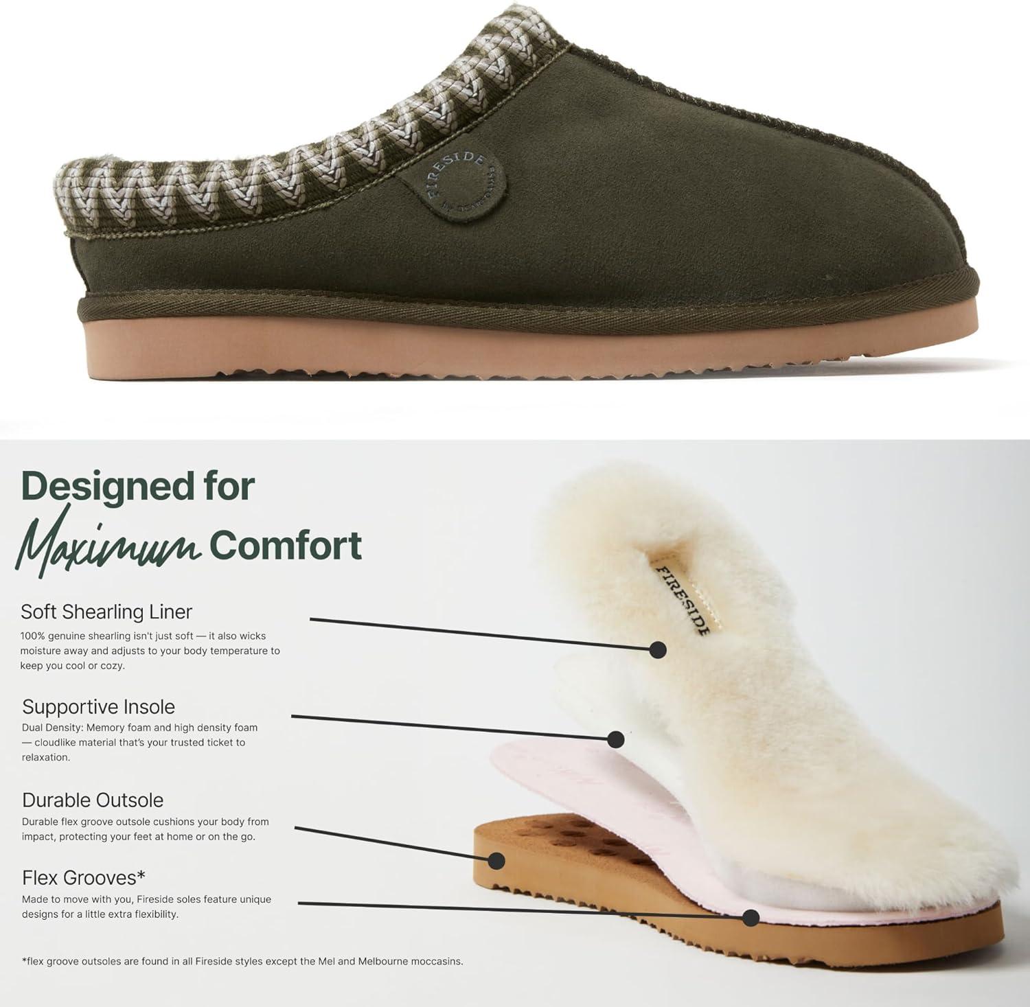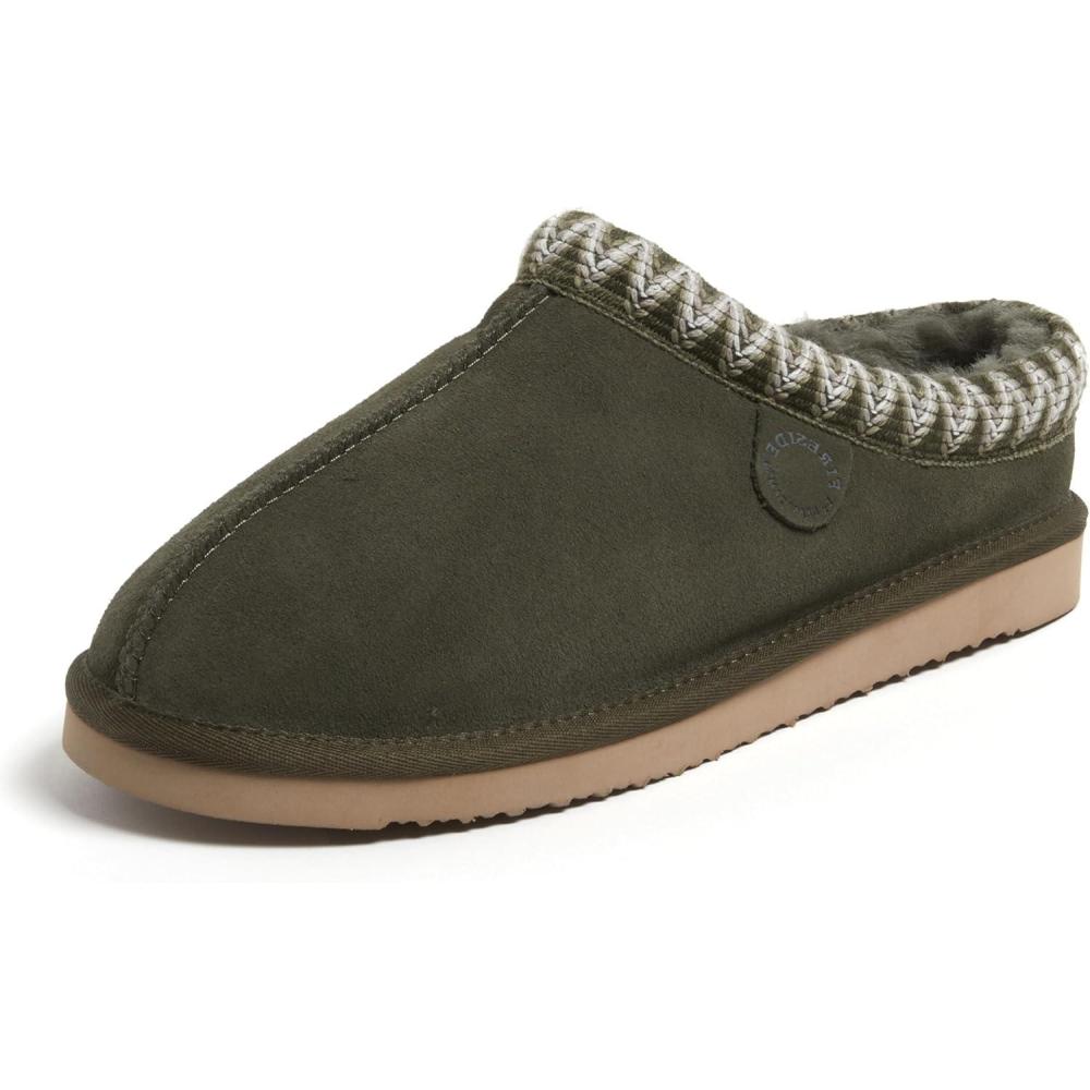 Fireside by Dearfoams Men’s Grafton Shearling Slipper, Memory Foam Suede Clog, Indoor/Outdoor Slip-in House Shoes(Loden Taping)