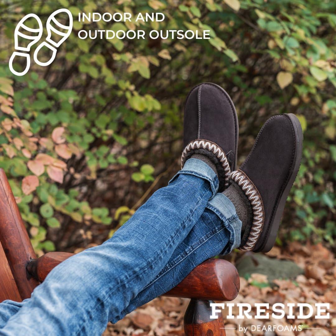 Fireside by Dearfoams Men’s Grafton Shearling Slipper, Memory Foam Suede Clog, Indoor/Outdoor Slip-in House Shoes(Navy Taping)
