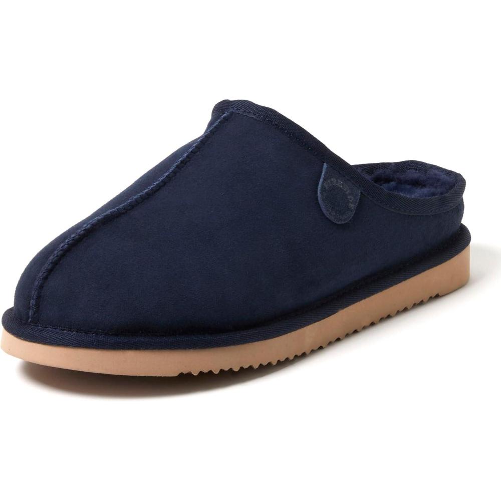 Fireside by Dearfoams Men’s Grafton Shearling Slipper, Memory Foam Suede Clog, Indoor/Outdoor Slip-in House Shoes(Navy)