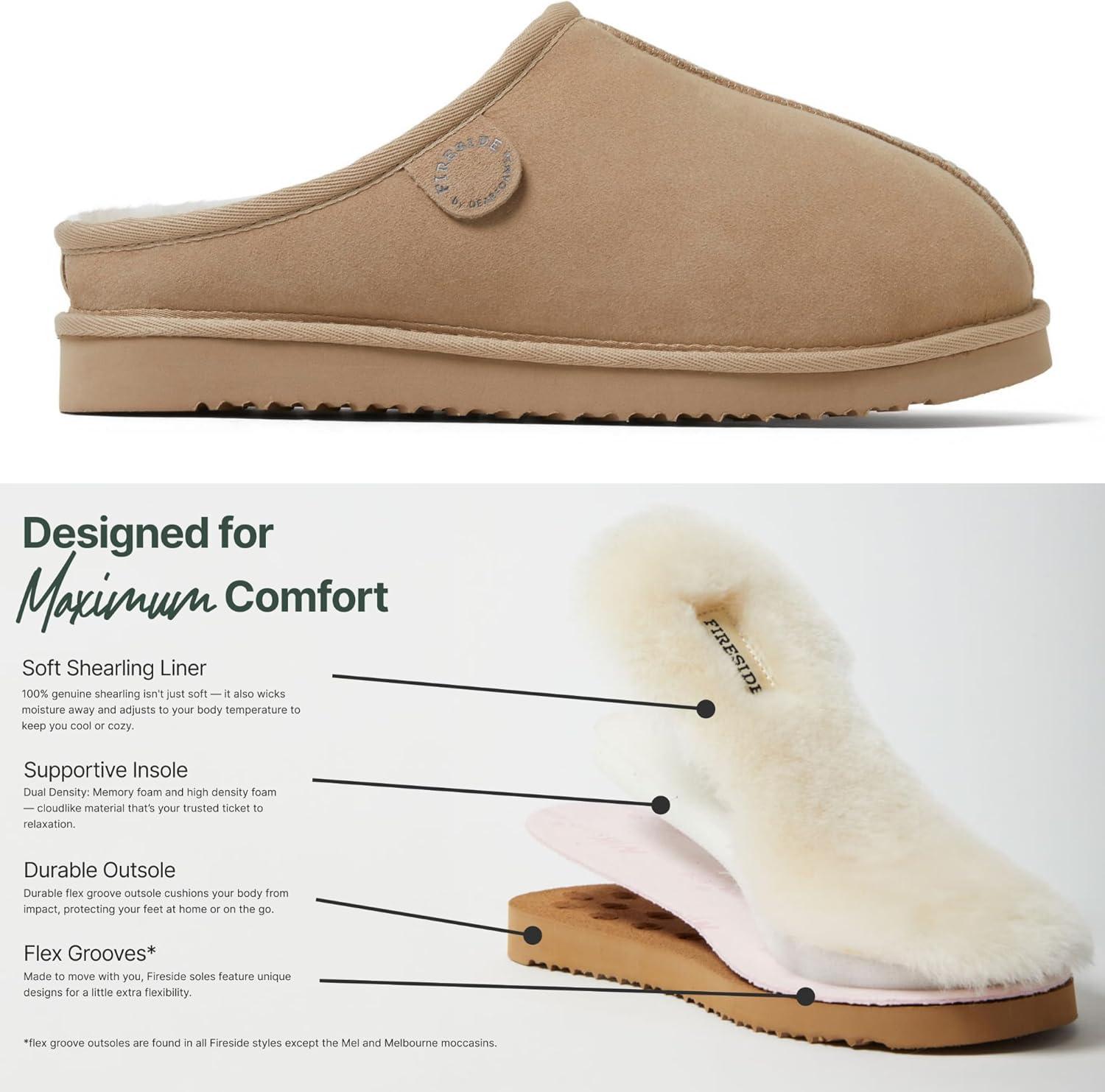 Fireside by Dearfoams Men’s Grafton Shearling Slipper, Memory Foam Suede Clog, Indoor/Outdoor Slip-in House Shoes(Sand)