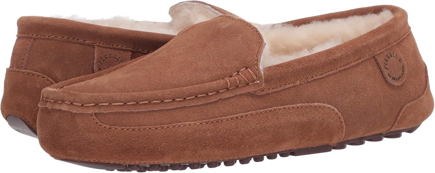 Fireside By Dearfoams Men’s Melbourne Genuine Shearling Moccasin Slippers, Memory Foam Sudede Loafers Slip-in House Shoes(Chestnut)