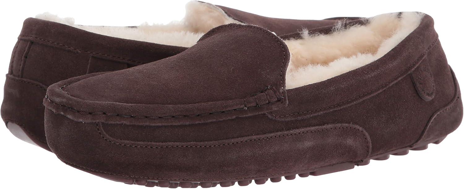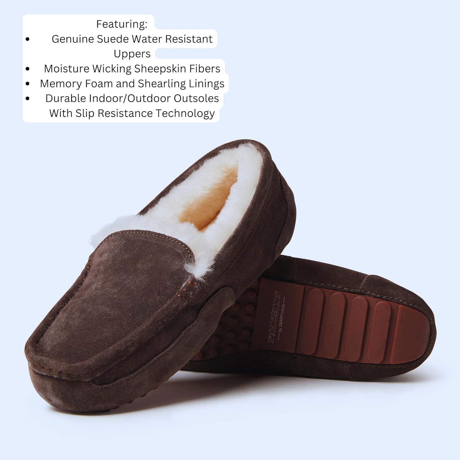 Fireside By Dearfoams Men’s Melbourne Genuine Shearling Moccasin Slippers, Memory Foam Sudede Loafers Slip-in House Shoes(Coffee)