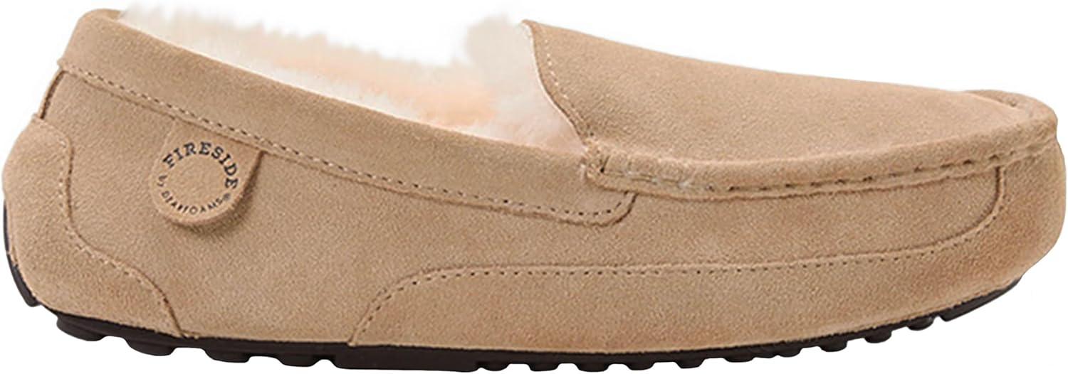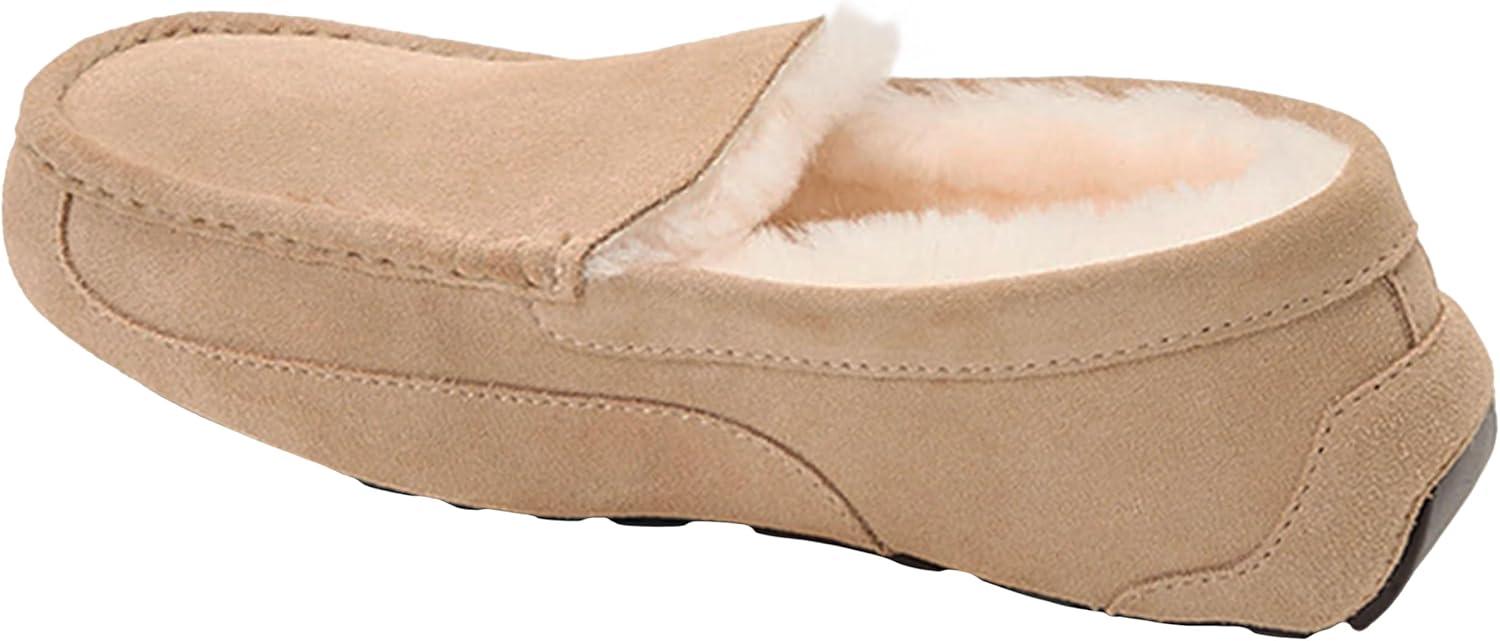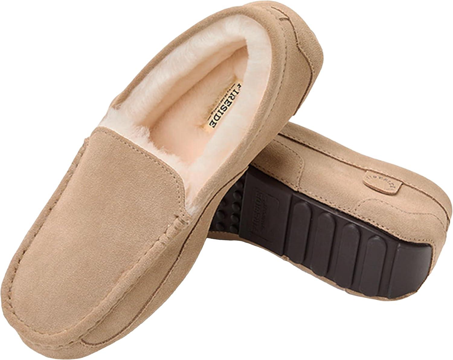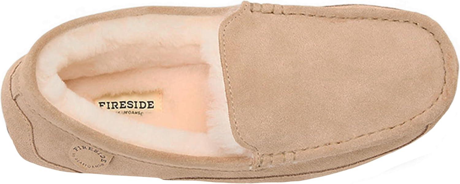 Fireside By Dearfoams Men’s Melbourne Genuine Shearling Moccasin Slippers, Memory Foam Sudede Loafers Slip-in House Shoes(Sand)