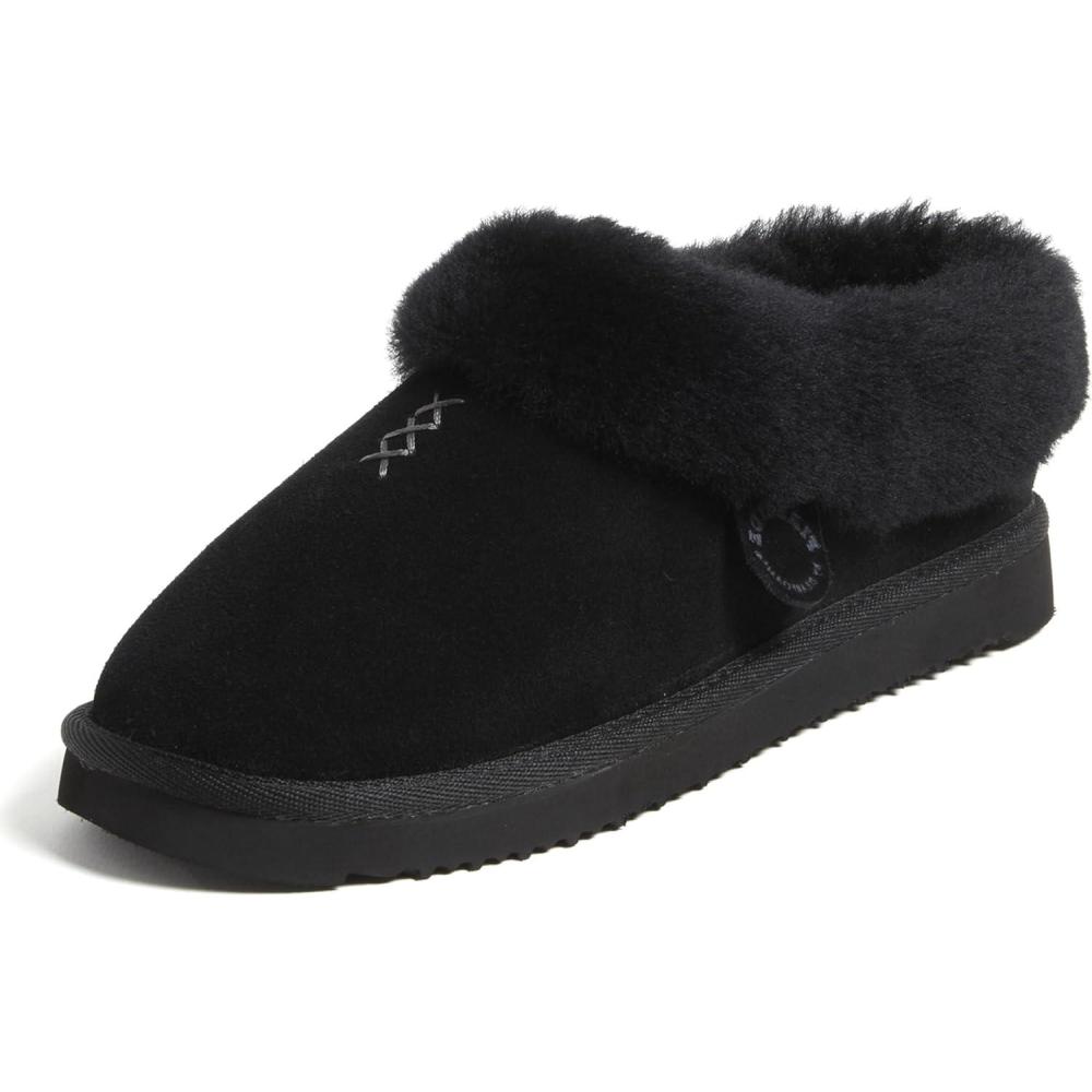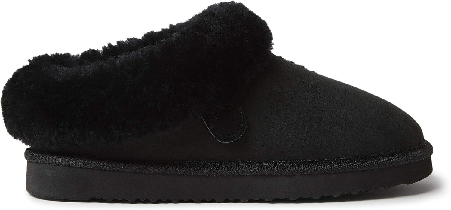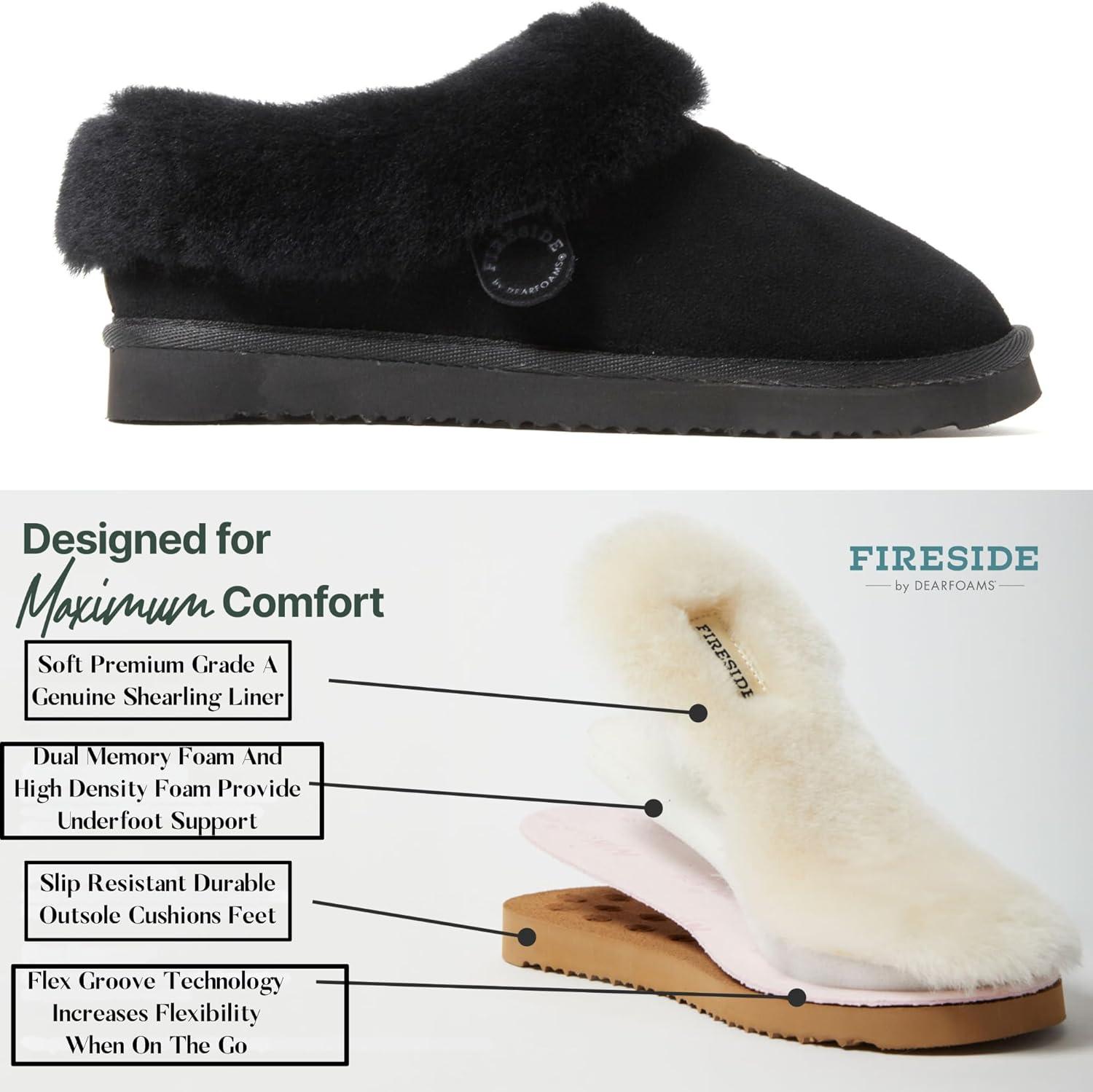 Fireside By Dearfoams Women’s Adelaide Slippers, Genuine Shearling Suede Scuff, Memory Foam Slip-in House Shoes(Black)