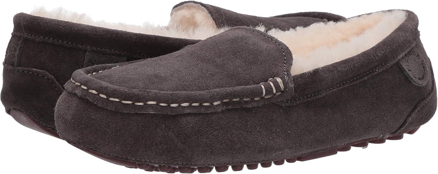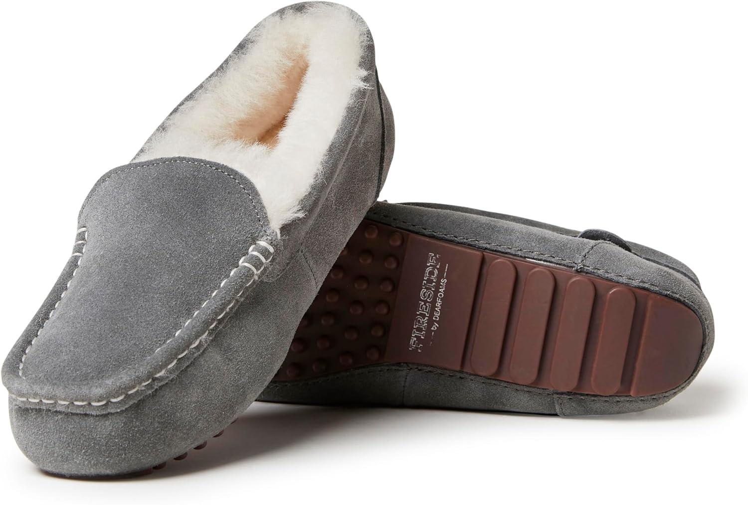 Fireside by Dearfoams Women’s Fireside Mel Shearling Indoor/Outdoor Moccasin Slipper with Wide Widths(Grey)