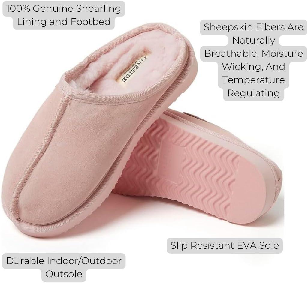 Fireside by Dearfoams Women’s Greta Genuine Shearling Clog(Pink)