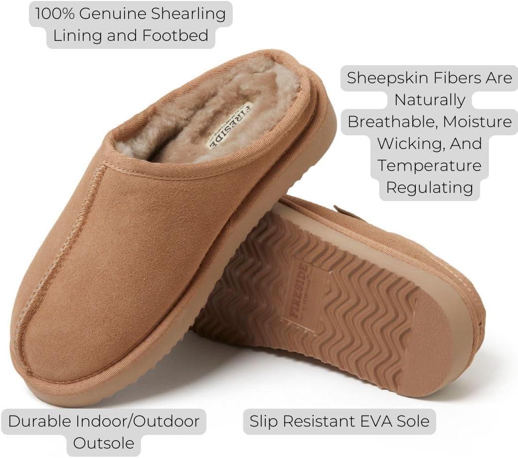 Fireside by Dearfoams Women’s Greta Shearling Indoor/Outdoor Clog Slipper(Chestnut Platform)