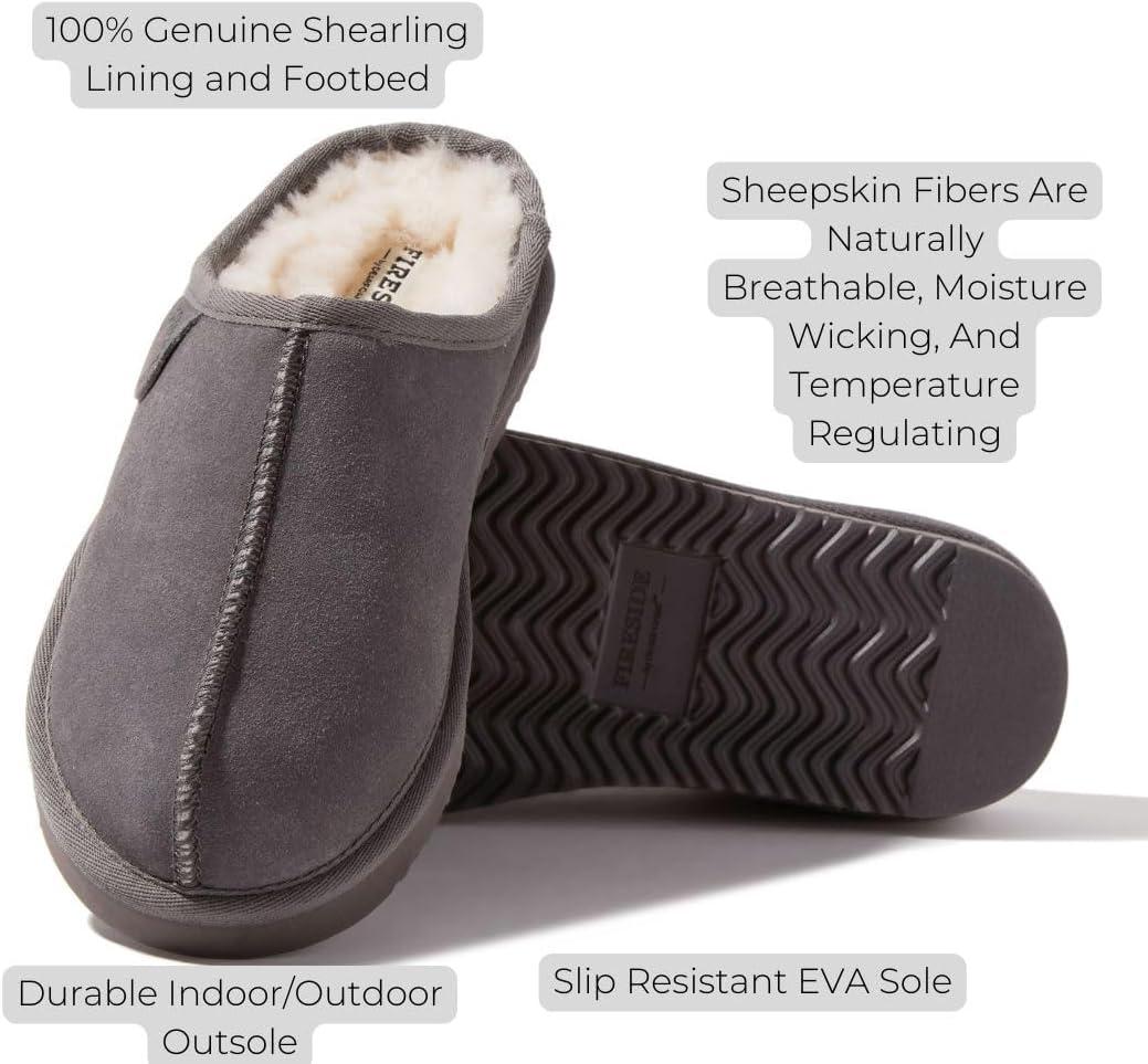 Fireside by Dearfoams Women’s Greta Shearling Indoor/Outdoor Clog Slipper(Grey)