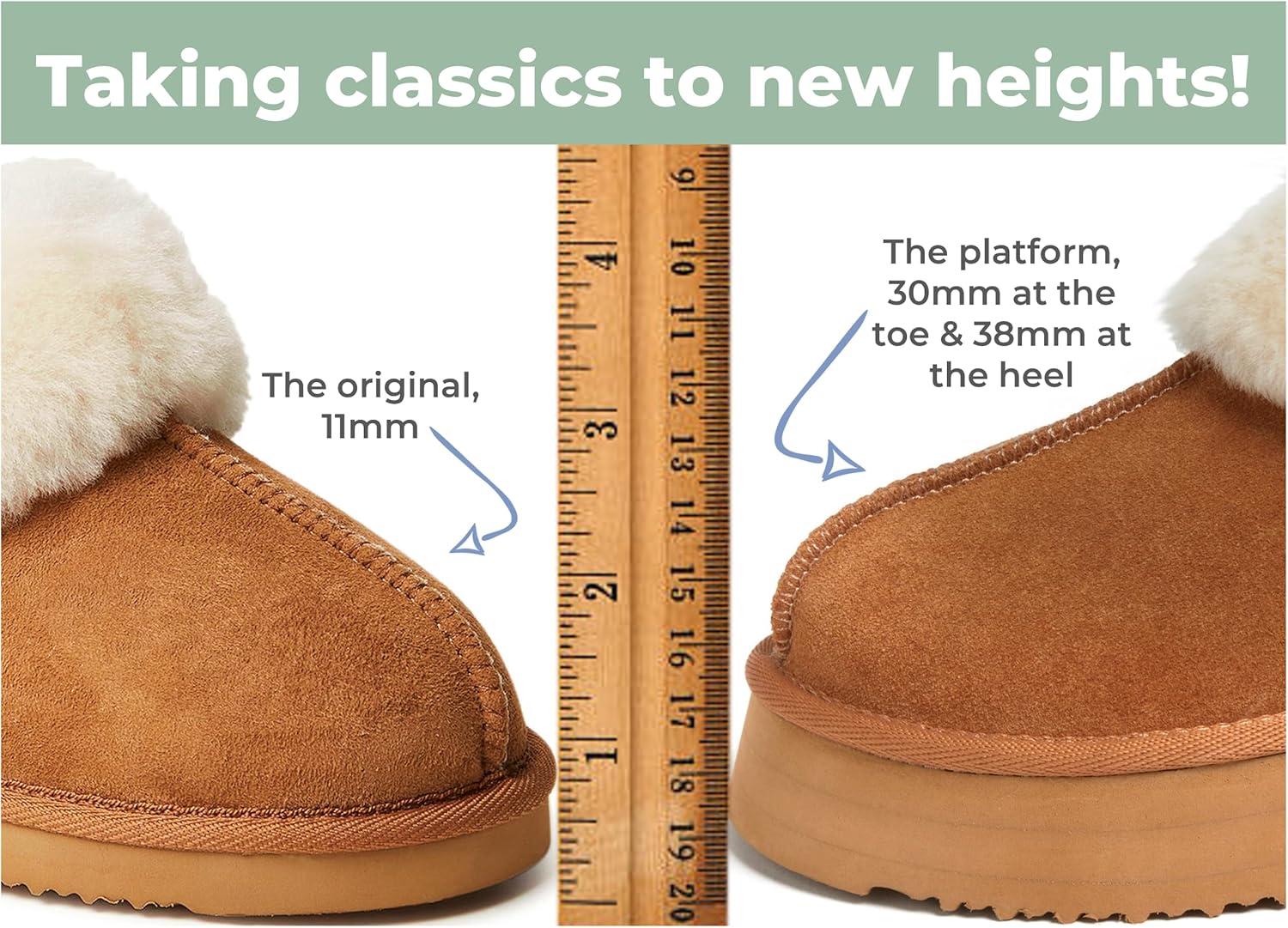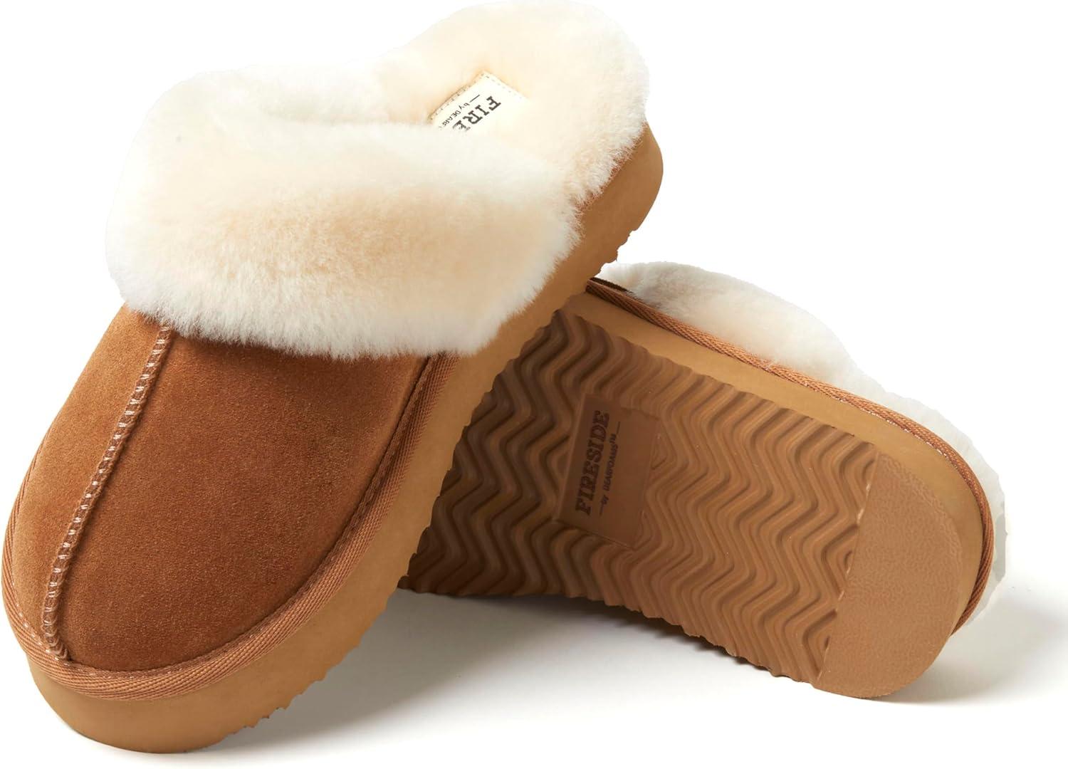 Fireside By Dearfoams Women’s Melton Platform Slippers, Genuine Shearling Memory Foam Slip-in House Shoes(Chestnut Platform)