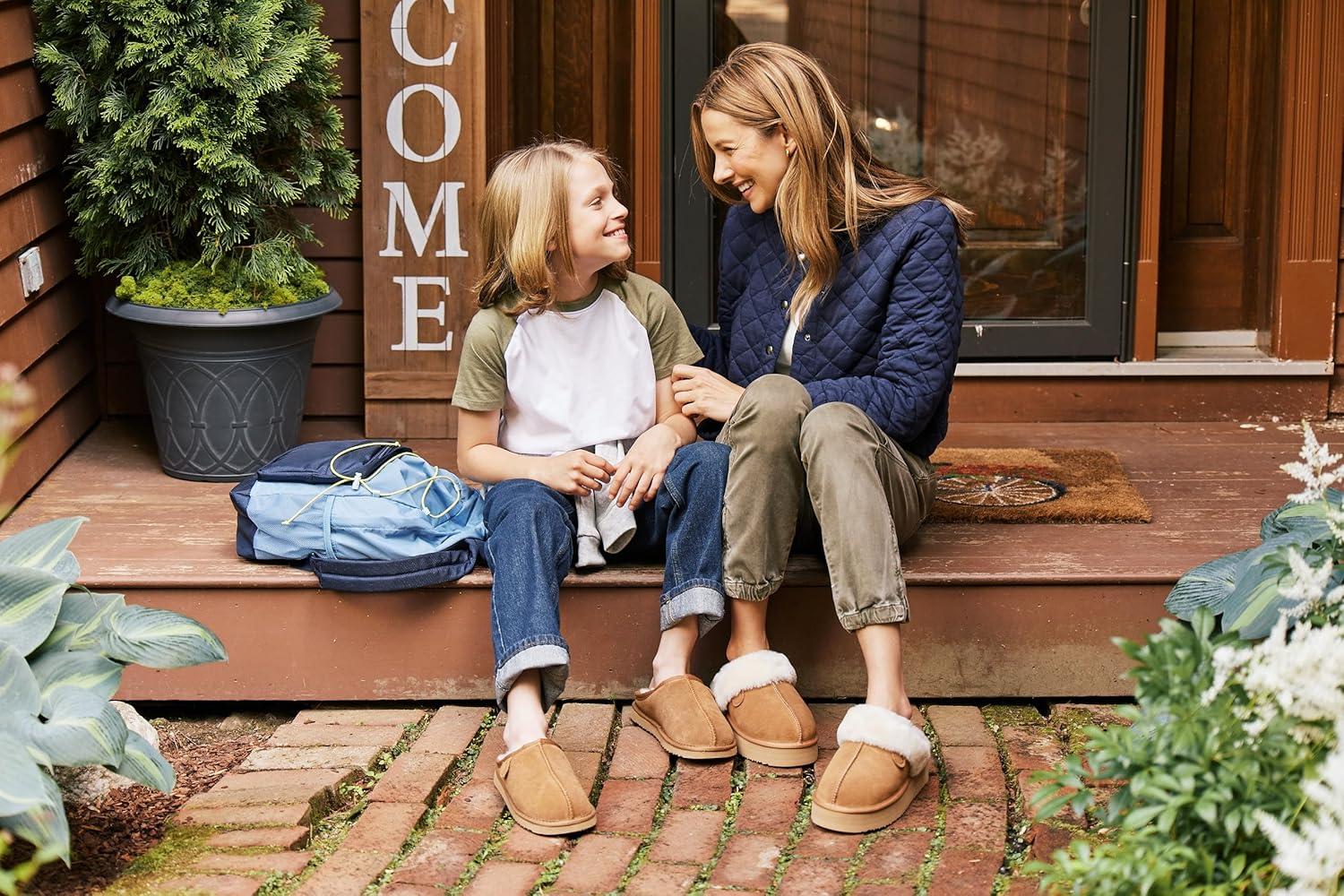 Luxury for everyone. That’s the idea behind the Fireside Collection: a line of slippers at an everyday price on superior quality competitive with other slipper brands. Perfect as a thoughtful gift for your loved ones, Fireside shearling slippers are sure to be their new favorite way to relax! Made with genuine Australian sheepskin lining, these affordable shearling slippers are a must for relaxing in style. But why shearling? Shearling boasts natural temperature-regulating and moisture-wicking properties. They’re a great blend of insulated and breathable, and a few of our styles even feature water-resistant designs to help protect you from the elements. Shearling is also known for its durability; these long-lasting slippers are sure to be favorites for years to come! Temperature-regulating and moisture-wicking slippers are perfect no matter the weather, and these indoor/outdoor slippers are built to handle the busiest of days. Our men’s shearling slippers, women’s shearling slippers, and kids’ shearling slippers are designed with unbeatable quality in mind.