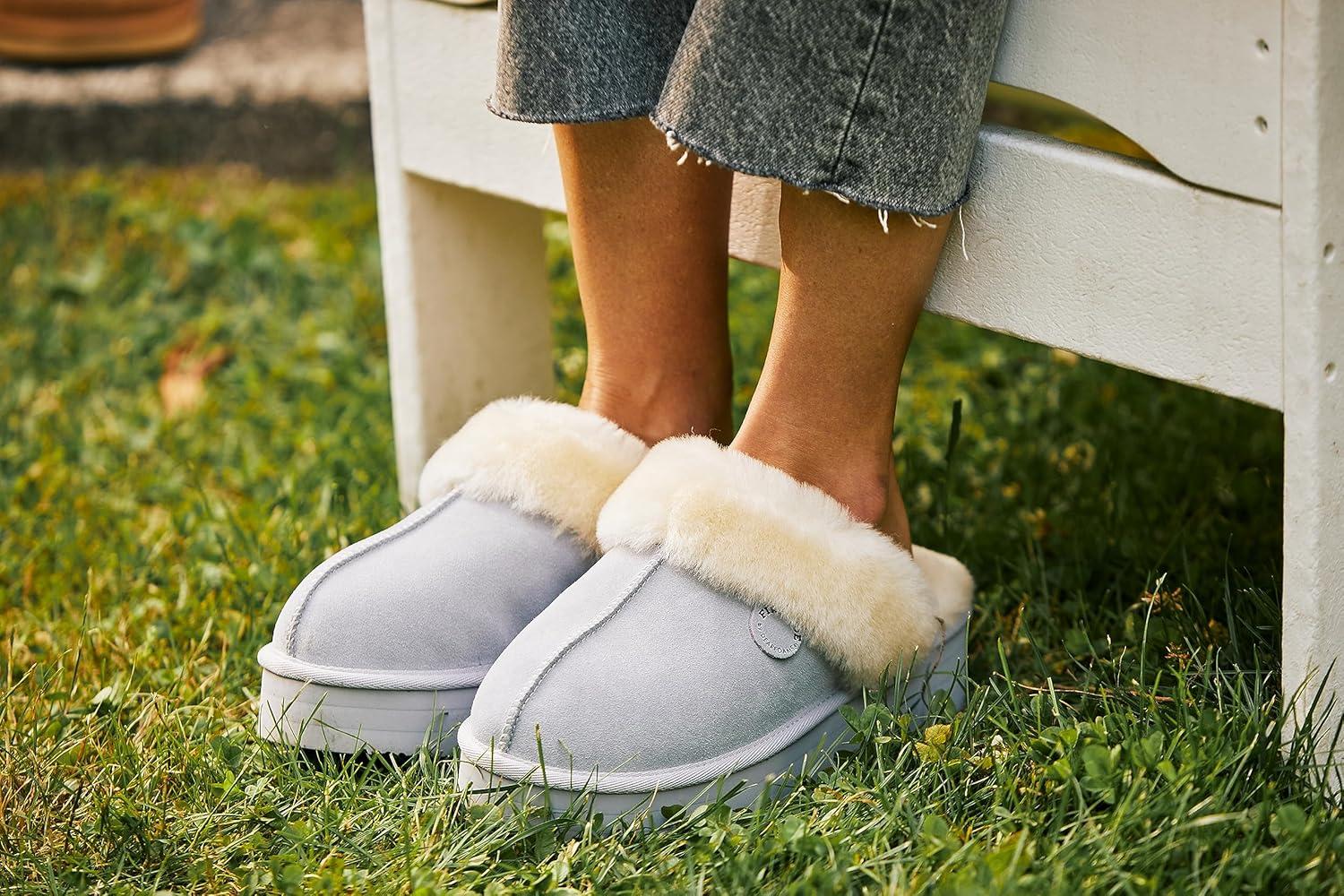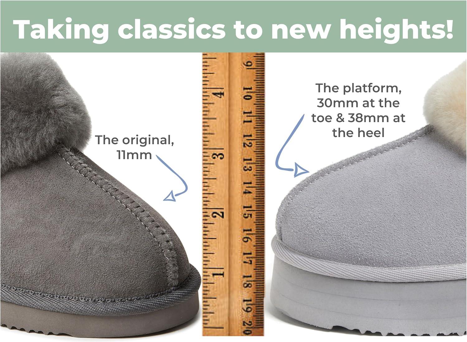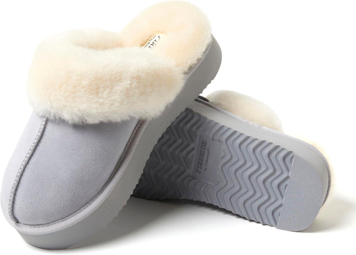 Fireside By Dearfoams Women’s Melton Platform Slippers, Genuine Shearling Memory Foam Slip-in House Shoes(Sleet Platform)