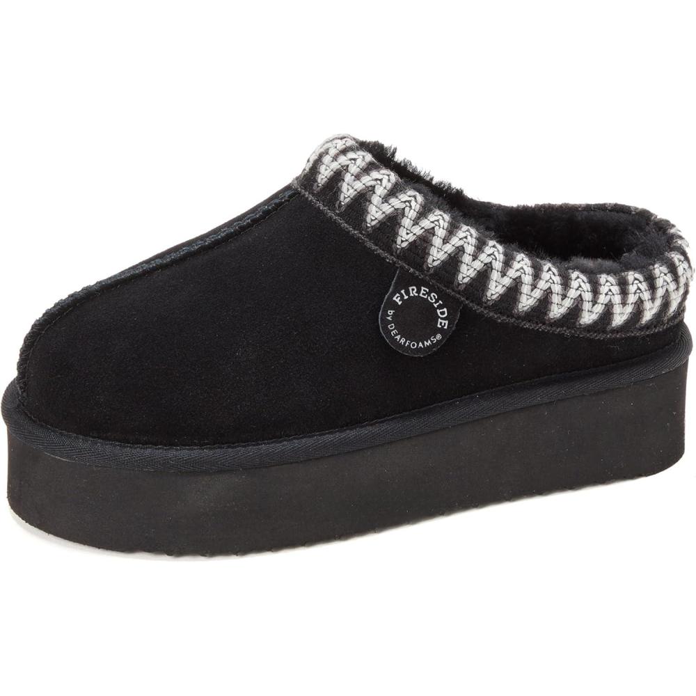 imageFireside By Dearfoams Womens Queenstown Shearling Slippers Memory Foam Suede Clog IndoorOutdoor Slipin House ShoesBlack Platform
