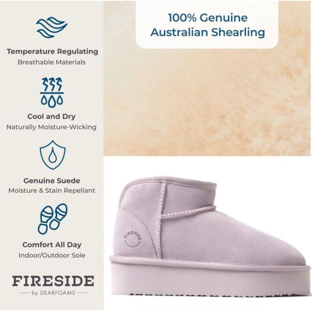 Fireside by Dearfoams Women’s Shearling Kingston Platform Mini Boot Ankle(Lilac Platform)