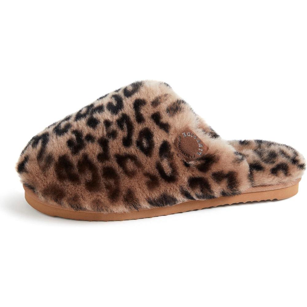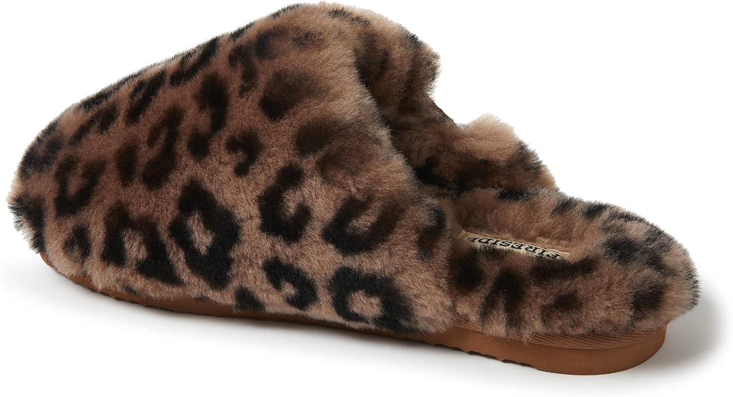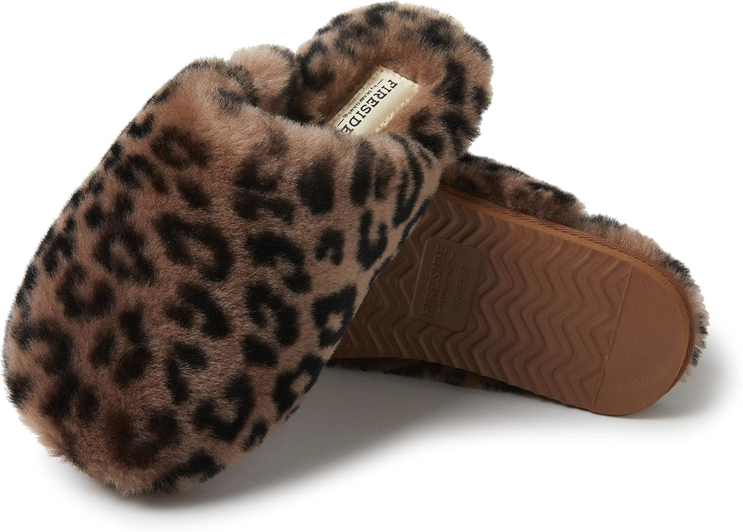 Fireside by Dearfoams womens Shelly Beach All Over Genuine Shearling Easy on/Off Scuff(Leopard)