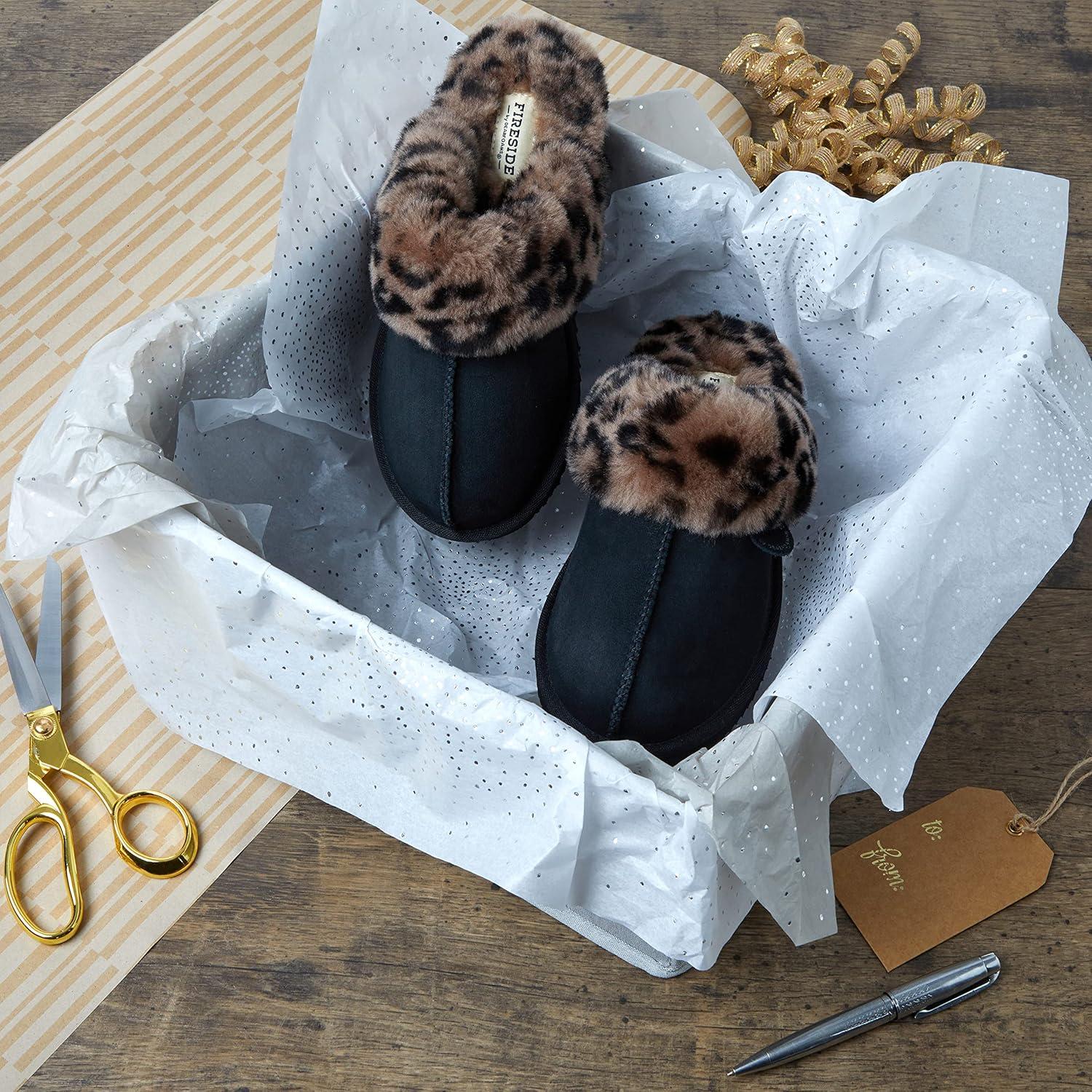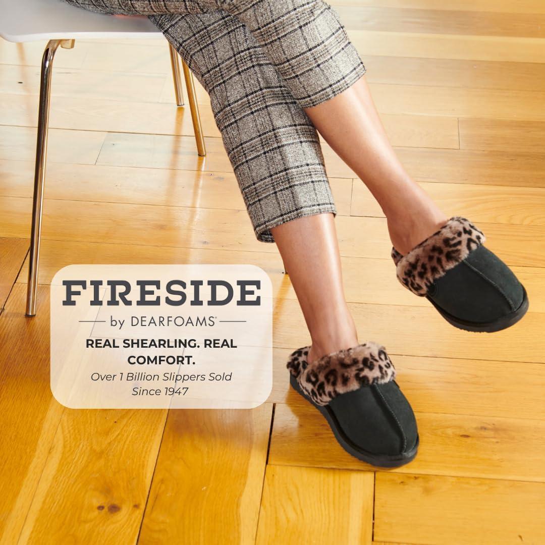 Fireside By Dearfoams Women’s Sydney Slippers, Genuine Shearling Suede Scuffs, Memory Foam Slip-in House Shoes(Black Combo)